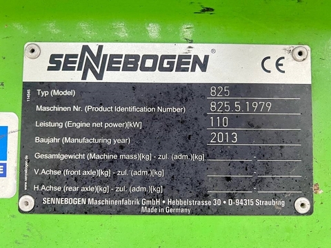 Sennebogen 825 Excellent Condition / Full Electric Year: 2013 Reference number: BM005645 Hours: 47.250 Type 825 Location Veldhoven, Netherlands Certificate: CE Serial number: 82551979 Available at Boss Machinery! This Sennebogen 825 Material handler from 2013 has an engine power of 110 kW and counts 47250 operational hours. The total weight of this Sennebogen 825 is 28000 kg and the dimensions are 10.40 x 3.99 x 4.25. Furthermore, this 825 is equipped with Extra hydraulic function, Central greasing. The Sennebogen Material handler also has a CE marking. Do you want more information or do you want to try the Sennebogen 825 at our yard? Please let us know. Sizes/Weights L*W*H: 10.40 x 3.99 x 4.25 Weight: 28000 Engine information Capacity in kW: 110 Tires/Tracks Sprocket % 70 Chain % 80 Plate % 70 Plate width: 60 Options Extra hydraulic function Central greasingKontaktdaten: