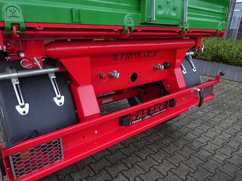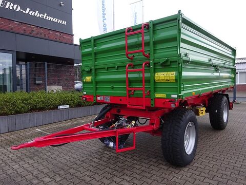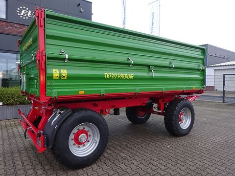 PRONAR Zweiachsdreiseitenkipper T 672/2, 14 t. NEU TOP-ANGEBOT Ausstellungsmaschine Baujahr 2022 – Jetzt zum SONDERNETTOPREIS sichern Angebotspreis: EUR 16.800,-- zzgl. 19 % MwSt = EUR 19.992,-- (Aktueller Listenpreis in dieser Ausstattung EUR 20.600,-- zzgl. MwSt) Preis ist inkl. : - 40 km/h Zulassungsunterlagen für Deutschland - automatisch lastabhängige Bremskraftregler (ALB) - 2. Aufsatz, 600 mm (Minderpreis EUR 1.250,-- zzgl. MwSt) Optional gegen Mehrpreis erhältlich: Rollplane mit klappbarem Planengestell und Podest EUR 1.250,-- zzgl. MwSt Bordwandhebefedern EUR 150,-- zzgl. MwSt Anhängerkupplung mit Steckbolzen EUR 130,-- zzgl. MwSt Automatische Anhängekupplung (Rockinger) EUR 800,-- zzgl. MwSt Technische Daten: Zul. Gesamtgewicht 14000 kg Eigengewicht 3600 kg Nutzlast 10400 kg Ladevolumen 5,9 m³ (11,8 m³) Pritsche innen LxB 4440 x 2190/2240 mm Gesamtmaße LxBxH 6455/2390/2000 mm Bordwand 600 mm + 600 mm Plattformhöhe 1345 mm Blechdicke (Boden/Bordwand) 5/2,5 mm Spurweite 1700 mm Parabelfederung Kippsystem dreiseitig Maximale Geschwindigkeit 40 km/h Zylinderlänge 1700 mm / 13 Liter / 200 bar Kippwinkel hinten/Seite 50°/46° Bereifung 385/65 R 22,5 RE Serienmäßige Ausstattung: Stahlprofilbordwände zentrale Bordwandverriegelung Deichsel mit starrer Zugöse Ø 40 mm Bordwände 600 mm + 600 mm konische Plattform 2-Kreis Druckluftbremse Kurbelbremse Kippeinrichtung mit Abschaltvorrichtung Teleskopzylinder Beleuchtungsanlage 12 V elektrischer Anschluß + Öl und Luft hinten Keile mit Halter Kornschieber in der Rückwand Kotflügel für Hinterachse Aufstiegsleiter Rahmen rot RAL3000, Aufbau grün RAL6010 Anlieferung und Finanzierung gegen Mehrpreis möglich.Kontaktdaten: