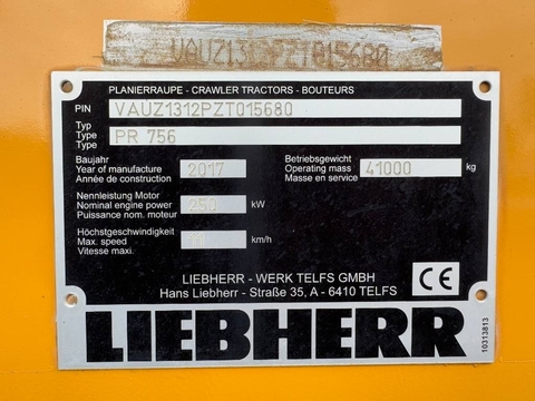 Liebherr PR756 TOP Condition / CE + EPA Certified Year: 2017 Reference number: BM006337 Hours: 10.433 Type PR756 Location Veldhoven, Netherlands Certificate: CE Serial number: VAUZ1312PZT015680 Available at Boss Machinery! This Liebherr PR756 Dozer from 2017 has an engine power of 250 kW and counts 10433 operational hours. The total weight of this Liebherr PR756 is 41000 kg and the dimensions are 7.35 x 4.25 x 3.67. Furthermore, this PR756 is equipped with Radio, Air Suspension Seat, Air Conditioning, AdBlue, Parking Heater, Backup alarm. The Liebherr Dozer also has a CE marking. Do you want more information or do you want to try the Liebherr PR756 at our yard? Please let us know. Sizes/Weights L*W*H: 7.35 x 4.25 x 3.67 Weight: 41000 Engine information Engine brand: Liebherr Engine model: D946 A7-04 Cylinders: 6 Turbo Capacity in kW: 250 Tires/Tracks Sprocket % 60 Chain % 80 Plate % 90 Plate width: 71 cm Options Radio Air Suspension Seat Air Conditioning AdBlue Parking Heater Backup alarmKontaktdaten: