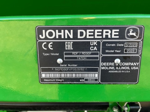 1 gebrauchtes Mähdrescher Schneidwerk Hersteller: John Deere Modell: RD 30 F Hydraflex Baujahr / Ersteinsatz 2023 Fläche: max. 650 ha Einsatzfläche Arbeitsbreite: 9,15 m 747CH HydraFlex-Bandschneidwerk RD 0138 Deutschland 0414 Betriebsanleitung in deutsch 0905 Doppelmesserantrieb 1005 Standardhaspel mit Poly-Zinken 2051 Feinzahniges Messer 2550 Mähdrescher der Serie T (ab Modelljahr 2012) 5600 Temporärer Oberflächenschutz 8451 Erntevorsatz-Höhenerkennung ohne Bodenberührung 9325 Obere Körnerspritzschutzblech 9606 Mittlerer Erntegut Mengenteiler 9675 Rieselschutz 9690 Obere Zuführschnecke Angebotspreis ohne Schneidwerkswagen !!! Gegen Mehrpreis von 22.000,- _ netto + 19 % MwSt. mit Zürn Schneidwerkswagen SWW-X6-630FD-A Allrad-gelenkter Schneidwerks-Transportwagen für Schneidwerk John Deere 630/730FD/RDF30F Gutachten für SWW-X6-630F Betriebsanleitung_SWW-X6_Deutsch Standort: Zürn Landtechnik D-87752 Holzgünz-SchwaighausenKontaktdaten: