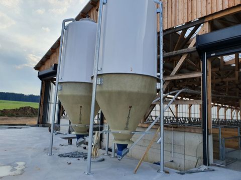 Verkaufe Futtermittelsilo Polyester Silo NEU, GFK Silo und Förderspirale, Mischwagenschnecke in unterschiedlichen Größen erhältlich GFK-FUTTERMITTELSILOS MIT WAAGRECHTER TEILUNG TYP SIA/GL mit Regentropfkante und spiegelglattem Trichter bestehend aus: - einem Oberteil (Zylinder) in weiß - einem Unterteil (Trichter) in transparent - 3 oder 4 lang reichenden Rohrbeinen aus feuerverzinktem Eisen; - Aufstiegsleiter mit Schutzkorb - einer integrierter Füllleitung mit 180° abschraubbarem Bogen und 4-Zoll Gewinde; - 2 integrierten Entlüftungsleitungen - GFK-Schraubdeckel - fertig zusammengebaut Optional: - Airdumper - Mischwagenschnecke - Befüllung zuzüglich FrachtkostenKontaktdaten: