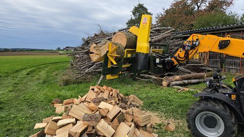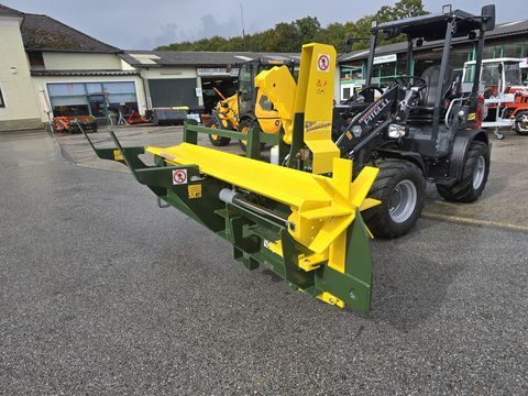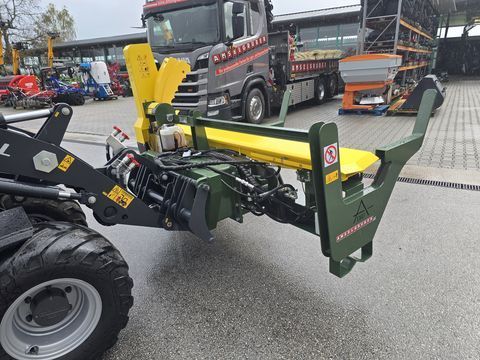 Das PROFIMODELL UNTER DEN SÄGESPALTAUTOMATEN – EIN GERÄT FÜR ALLE TRÄGERFAHRZEUGE: -Wir spalten Holz bis 50 cm Stammdurchmesser (Standard) -Bis zu 4 Meter Lange Stämme können problemlos gespalten werden. (Standard) -Hydraulische Höhenverstellung des Spaltkreuzes -Erforderliche Hydraulikleistung: ab 40 lt/min (Auch für kompaktere Hoflader, Frontlader, Radlader, Teleskoplader und Minilader kein Problem) -Kompakte Bauform und Gewicht: 608 Kg ohne Anbau (Ideal vom kompakten Hoflader bis zum großen Radlader oder Teleskoplader Einsetzbar) -Einfache und intuitive Bedienung über Funk-Fernsteuerung (Kein Kabelsalat, keine abgedrückten oder eingeklemmten Kabel – Immer sofort Einsatzbereit) -Automatik-Steuerung - Der Spaltablauf kann auf Automatikbetrieb oder Handbetrieb eingestellt werden. -Auf der Funk-Fernbedienung kann sowohl der Automatikbetrieb eingeschalten werden, als auch alle Funktionen einzeln bedient werden. -Besonders Vorteilhaft: Von der Fernbedienung aus kann man auch die wichtigsten Einstellungen, wie Vorschub und Kettenschmierung Ganz einfach und variabel einstellen – Unser Motto: Einfach und perfekt! Und vor allem ohne Absteigen und ohne Handarbeit. Viele Jahre Erfahrung und Vielzahl zufriedener Kunden zeichnen unseren Sägespaltautomaten aus! Der Sägespaltautomat wird in bester Verarbeitung und höchster Qualität komplett im Maschinenbaubetrieb nähe Brünn gefertigt. Es kommen ausschließlich Markenkomponenten höchster Qualität zum Einsatz. (zb.Parker Hydraulikmotoren uvm.) Benötigte Anschlüsse: 3 Hydraulikanschlüsse (1xDuck, 1x Rücklauf, 1x Lecksgeleitung) und 1x Stromsteckdose bei Spalter und 1x Strom in Kabine) Die beste Wahl – Einfach und Perfekt! Der A-Dro Sägespaltautomat Dominator VAKR- A 500 HK. Wir führen Ihnen den Sägespaltautomaten jederzeit gerne bei uns in Tarsdorf vor. Auf Wunsch bauen wir Ihnen auch gerne den Sägespaltautomaten direkt bei Ihnen vor Ort an Ihr Trägerfahrzeug an. Für unseren hydraulischen Sägespaltautomaten sind alle gängigen Hoflader- Frontlader – Radlader- Minilader- und Teleskopladeraufnahmen verfügbar. Wie: Fuchs, Pitbull, Cast, Schäffer, Weidemann, Thaler, Giant, Manitou, Dieci, Gehl, Merlo, Jcb, Bobcat, Avant, Multione, Stoll, Quicke, Hauer, Hydrac, Liebherr, Case, Caterpillar, Volvo und viele mehr. Der hydraulische Sägespaltautomat für Lader kann jederzeit in Tarsdorf besichtigt und getestet werden. Sehen Sie sich auch unsere Produktvideos auf Youtube an. Für Fragen aller Art, stehen wir Ihnen gerne zur Verfügung. Wir beraten Sie gerne. Auch: Holzspalter für Hoflader, Holzspalter für Teleskoplader, Sägespaltautomat für Radlader, Sägespaltautomat hydraulisch für Hoflader +Radlader + Teleskoplader.Öffnungsweite (cm): 50
