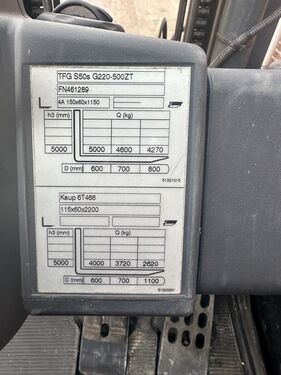 == Overige details (NL) == Jungheinrich TFG S50 • 5300 draaiuren • Nominale belasting 5000kg • Hefhoogte 2846mm • Totale breedte 1445 mm • Side shift op lepels Staat: GebruiktKontaktdaten: