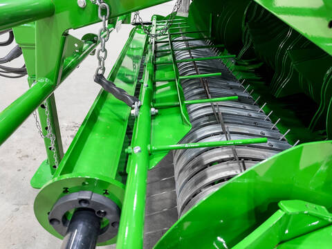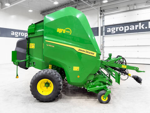 Neu John Deere V451M Rundballenpresse, 90 - 165 cm Ballendurchmesser, variable Kammer, Netzbindung, MaxiCut HC Premium mit 13 Messern, BaleTrak Plus Monitor Baujahr: 2023/2026 Gewicht: 3610 kg Mit Monitor: Ja // ANDERE // - Allgemein: - - Mindesttraktorleistung = 100 PS (ohne Messer – Messer aus) - - Mindesttraktorleistung = 110 PS (Messer an) - - 2 Paare von Steuergeräten erforderlich - - 3-poliger Stecker (12 V) in der Kabine erforderlich - - Nur Netzbindung - - Lagerkapazität: 2 Rollen Netz - - Kompatibel mit CoverEdge™ und Standardnetz - Getriebe - - 6-Keilwellenzapfwelle, 540 U/min - - Rutschkupplung als Überlastschutz – 113 kW (154 PS) Schutz - - Weitwinkelzapfwelle mit Freilauf, 50-Stunden-Schmierintervall - BaleTrak Plus Monitor - - Nicht ISOBUS-kompatible Presse - - Nicht nutzbar mit ISOBUS-Traktor - - LCD-Display - BaleTrak Plus Monitor mit folgenden Anzeigen: - - Ballenformanzeige - - Ballendurchmessereinstellung - - Softcore-Aktivierung und Einstellung - - Netzbindungssystemeinstellungen - - Anzeige: "Kammer fast voll / voll / Stopp" - - Angezeigte Symbole (Türstatus, Bindestatus, Batterie) - - 5 Tageszähler + 1 Gesamtballenzähler - - Monitorhalterung – für John Deere 5XXX / 6XXX / 7XXX Traktoren - Achse - - Starrachse - Verbindung - - Verstellbare Deichsel (mit gezahnten Scheiben) für unteren oder oberen Anbau - - Abgewinkeltes Zugauge mit Buchse - - Sicherheitskette - - 2 Stützfüße - Schmierung - - Manuelle Schmierung – zentrale Schmierblöcke - - Automatisches Kettenschmiersystem - - Individuell einstellbare Dosierung - - Volumetrische Pumpe mit kontinuierlicher Ölung - - Schmierung aller Ketten - Beleuchtung - - 2 Frontscheinwerfer - - 2 Rücklichter - - Vorbereitung für 2 rot/weiße Warntafeln hinten - - Standard 2,20 m Pickup (2,12 m nach DIN) - - 4 Reihen, 5 mm Durchmesser Zinken - - L-förmige Zinkenträger ohne zentrale Lager - - Verzinkte Abstreifer - - Nockensteuerung Pickup - - Kugelgelagerte Zinkenträger - - Hydraulische Hebevorrichtung für das Pickup - - Einstellbarer Tiefenanschlag und Schwimmstellung - - Presswalze: 2,20 m - - Bodenfolgende Räder - MaxiCut HC13 Premium Zuführsystem - - Premium Hochleistungsrotor mit integrierten Seitenförderschnecken - - 3 Rotorfinger mit Hardox® Verschleißeinsätzen bei jeder Umdrehung - - 13 Messer – 80 mm Messerabstand - - 0/13 Messer, Aktivierung vom Monitor - - Messer einzeln federbelastet - - Doppelt wärmebehandelte Messer - - Messerschutz für MaxiCut HC13 Premium - - Vollbreite und parallele Absenkboden – steuerbar von der Kabine - Presskammer - - Ballendurchmesser: 0,9 m – 1,65 m, einstellbar vom Monitor - - Presskammerbreite: 1,21 m - - 2 angetriebene Frontwalzen + 1 angetriebene Einzugswalze - - 6 Bänder – mit MATO Bandverbindern - 1 gummibeschichtete Antriebswalze und Antriebsbänder + zweiter Walzenantrieb (1 angetriebene Reinigungsschnecke im vorderen Kammerabschnitt + 1 angetriebene Reinigungsschnecke in der hinteren Tür) - - Variable Ballendichtekontrolle mit Regelventil (Knopf) - - Hydraulisches Manometer an der Presse - - 0 bar Softcore-Einstellung vom Monitor - - Abschmierbare Lager - - Presskammer- und Einzugsantrieb mit 1" Ketten - Abmessungen - - Reifen: 500/50-17 - - Gesamtbreite der Presse ca.: 2,95 m Bei Fragen stehen Wir gerne zur Verfügung. Telefon: siehe Kontaktinfo Wir bieten auch Transport in ganz Europa an. Agropark: 44149Kontaktdaten: