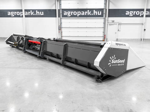 Neu SunSeed Xtra 16-75 12 m (16 Reihen) reihenunabhängiges Sonnenblumen-Schneidwerk für John Deere S/T/W Mähdrescher, Stängelzieher, verstellbare Ablenkplatte, hydr. Haspelverstellung Baujahr: 2026 Schneidwerksbreite: 12 m Transportwagen: Nicht Befestigung: John Deere // ZUSATZGERÄTE // - Kardangelenk // ANDERE // - Reihenunabhängiges Sonnenblumenschneidwerk - Arbeitsbreite: 12 m (kann 16 Reihen mit 75 cm Reihenabstand bearbeiten) - Gesamtbreite: 12,2 m - /Gewicht: x kg - Reihenabweichung: bis zu 20-30° - Gegen Aufpreis ist auch ein Transportwagen erhältlich - Haupteigenschaften - Robuste und langlebige Struktur - 1800 mm lange Sammelwannen mit einstellbarem Abstand - Der Abstand zwischen den Sammelwannen kann zwischen 4-6 cm eingestellt werden - Hydraulisch einstellbare Haspelhöhe - Stängelzieher - Einstellbare Ablenkplatte - Stängellose Ernte - Schumacher Messer und Haspelfinger - Optibelt Riemen - Parker Hydraulik - Beschreibung - SunSeed Xtra ist ein reihenunabhängiges Sonnenblumenernteschneidwerk mit einer robusten und langlebigen Struktur. Dank der einstellbaren 1800 mm langen Sammelwanne eignet es sich perfekt für die Ernte von Sonnenblumen mit unterschiedlichen Stängellängen und -dicken. Der Einsatz einer einstellbaren Ablenkplatte, im Gegensatz zu einer einfacheren Rohrlösung, verhindert das Mitführen von Blättern und reduziert den Kornverlust. Die Höhe der Haspel kann bequem und einfach aus der Kabine eingestellt werden. Dank des Stängelziehers gelangen nur die Sonnenblumenköpfe in das Dreschsystem des Mähdreschers, wodurch der Verschleiß und der Kraftstoffverbrauch reduziert werden können und ein leistungsschwächerer Mähdrescher für die Ernte ausreicht. - Das reihenunabhängige Schneidwerk ermöglicht eine schnellere Ernte, und die gute Gewichtsverteilung dank sorgfältiger Planung schützt die Bodenstruktur erheblich vor Verdichtung. - Das Schneidwerk besteht aus ausgewählten Qualitätskomponenten wie Schumacher Messern, Optibelt Riemen und Parker Hydraulikelementen. - Kompatibilität - Für John Deere S/T/W Mähdrescher - Das Sonnenblumenschneidwerk kann auch mit Claas, CNH (Case IH, New Holland), AGCO (Fendt, Massey Ferguson, Laverda), Deutz-Fahr, Rostselmash usw. Halterung bestellt werden! - Demo-Video für SunSeed Schneidwerke: - https://youtu.be/80vHWR4db2w?si=2pcnCZ4i1rtbWUge - Weitere SunSeed Videos: - https://www.youtube.com/@AgroparkHUN/search?query=sunseed - Mehr über die Marke SunSeed erfahren: https://agropark.hu/en/latest-news/SunSeed-Magyarorszag-piacvezeto-sorfuggetlen-napraforgo-adapterei-n237 Bei Fragen stehen Wir gerne zur Verfügung. Telefon: siehe Kontaktinfo Wir bieten auch Transport in ganz Europa an. Agropark: 44985Kontaktdaten: