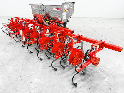 Neu Maschio Gaspardo HS8 8-reihiger Hackstriegel, 950 L Edelstahldüngertank, klappbarer Rahmen, 5MDD - 5 Zinken und 2 Scheiben Baujahr: 2025/2026 Gewicht: 1470 kg Mit Monitor: Nein // ANDERE // - HS8 Reihenkultivator - - Anzahl der Reihen: 8 - - Reihenabstand: 75 cm - - Fassungsvermögen des Düngertanks: 950 l - - Transportbreite: 2,5 m - - Anzahl der Bodenbearbeitungseinheiten: 9 - - Hydraulikanforderung: 2 - - Leistungsanforderung: ca. 90 PS - - Eigengewicht: 1.470 kg - Merkmale: - - Hydraulisch klappbarer Rahmen - - CAT 2 3-Punkt-Anhängung mit festen 1. und 2. Punkten - - 950 Liter Edelstahldüngertank - - Pneumatische Düngerverteilung - - 8 gleichmäßig verteilte Auslässe - - SPEEDY SET zentrale Düngerdosierungseinstellung - - 2 Inspektionsfenster - - Schutz für Straßentransport - - 2 Stützräder - - Eisenräder zur Regulierung der Arbeitstiefe der Pflanzeinheit mit Kugellagern - - Doppelantriebs-Übertragungsrad mit auf Kugellagern montierter Lastfeder - - 5MDD - 5 Zinken pro Bodenbearbeitungseinheit mit 2 gezahnten Reihenschutzscheiben - - Äußere Zinkenfreigabe - - 900 mm lange 1”3/8 Z6-Z6 Zapfwelle - - Stützbeine - - Straßenbeleuchtung - - Warnschilder - Beschreibung - Der Maschio Gaspardo HS8 ist ein 8-reihiger Reihenkultivator. Dank seines hydraulisch klappbaren Rahmens ist er leicht auf Straßen transportierbar. Der Kultivator verfügt über einen 950 Liter Edelstahldüngertank mit einem mechanisch einstellbaren Verteiler. Die Bodenbearbeitungseinheit, 5MDD, besteht aus 5 Federzinken und gezahnten Reihenschutzscheiben. - Erfahren Sie mehr über die Marke Maschio Gaspardo: https://agropark.hu/en/latest-news/MASCHIO-GASPARDO-teljes-termekportfolio-a-mezogazdasagi-munkagepek-piacan-n221 Bei Fragen stehen Wir gerne zur Verfügung. Telefon: siehe Kontaktinfo Wir bieten auch Transport in ganz Europa an. Agropark: 39363Kontaktdaten: