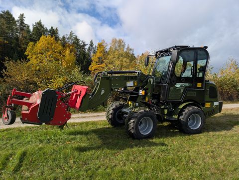 Profi Geräte für alle Anwendungsbereiche! Starker hydrostatischer Fahrantrieb mit 2 Stufen und ordentlich Power! Wendig, robust und langlebig Kabine mit Heizung, Lüftung, Radio und Rückfahrkamera Teleskop Ausschub 70cm Motor: YANMAR 3TNV86CT Turbo Diesel Euro5Zylinder: 3 Leistung: 32,4 kW / 45 PS Kühlsystem: Wassergekühlt Spannungsversorgung: 12VBatterie: 12V / 60 Ah Antrieb: PWG elektronisch geregelter Hydrostat mit Kardanwelle (2 Fahrstufen) über Joystick schaltbar auf Wunsch auch mit größerem PWG Motor Fahrstufe 1: 0 - 10km/h Fahrstufe 2: 0 - 20 km/h Tempomat Funktion über Drehregler Differentialsperren vorne und hinten elektrisch am Joystick Dauerölfluss and den Zusatzkreisen vorne über Joystick schaltbar Euroaufnahme hydraulisch verriegelbar 2xDW vorne (4 Anschlüsse)1x druckloser Rücklauf Kraftstofftank: 30 Liter Hydrauliktank: 50 Liter Hydraulikölleistung: 42 L/min Hydrauliköldruck: 160 bar Gewicht: 2.800 kg Hubkraft: 1.100 kg (ohne extra Gewicht fahrbar) Lenkeinschlag: 45° Standardschaufel: 0,4 m³ Ladevolumen Bereifung: 31x15.5-15 Ackerprofil Leasingfähig! 24 Monate Mobil Garantie!Kontaktdaten: