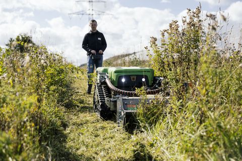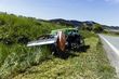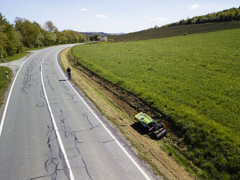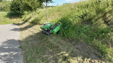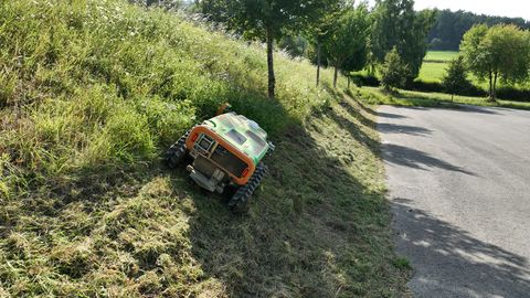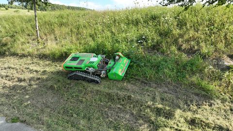 VOGT Profitechnik aus Schmallenberg – Ihr führender Anbieter für professionelle Landschaftspflegetechnik = Mehrere VOGT-Standorte + 100 Servicepartner in Deutschland & Österreich = Eigener VOGT Lieferservice + mobiler VOGT Kundendienst = Schnelle und zuverlässige Ersatzteilversorgung innerhalb 24h = Hohe Qualitätsstandards und ausgezeichnetes Know-How seit 1926 MDB Funkraupe Typ: GREEN CLIMBER LV250 PRO 26 PS (19 kW) Benzinmotor max. 60° Hangneigung mit Kettenfahrwerk (240 mm hydraulisch verstellbar) mit 300 mm hydraulischer Seitenverschiebung des Anbaugerätes mit Funkfernbedienung Inklusive : Ketten (2 Stück) mit erhöhtem Gummiprofil (Hochstollen) Inklusive : BIO-Hydrauliköl (PANOLIN HLP SYNTH 46) Inklusive : Schlegelmulchkopf zur MDB Funkraupe LV250 Typ: TXL-80 800 mm Arbeitsbreite 850 mm Gesamtbreite robustes Mulchgehäuse aus hochfestem Stahl inkl. Anbaukonsole mit QUICK-RELEASE-System Kompakte Funkraupe mit äußerst flexiblen Einsatzmöglichkeiten = LOW-CENTER-Fahrwerk mit niedrigem Schwerpunkt (450 mm) + geringes Gewicht für Steillagen bis 60° = flexible Spurbreitenverstellung von 800-1040 mm = bodenschonendes Arbeiten dank geringem Bodendruck (120 g/cm²) = ideal für beengte Einsatzbereiche (z.B. Trassenpflege, Straßenböschungen, innerstädtische Bereiche) dank schmaler Außenbreite von nur 800 mm = ideal für Solarparks, Unterführungen etc. dank geringer Bauhöhe von nur 750 mm 26 PS (19 kW) Benzinmotor = leistungsstarker und zuverlässiger Benzinmotor (2 Zylinder) Einzigartige Motorschmierung = einzigartiges MDB-System ermöglicht dauerhaft störungsfreies Arbeiten in extremen Hanglagen und verhindert langfristige Motorschäden = Dauerschmierung bis 75° Neigung des Motors = bei gewöhnlichen Funkraupen besteht oftmals Gefahr durch mangelnde Ölversorgung (Motorschäden) bei Dauerbetrieb in Steillagen SENSITIVE POWER DRIVE = einzigartige Fahrantriebstechnik für maximale Leistung am Hang = Hydraulikpumpen mit intelligenter Sensorik sind direkt mit Joystick der Funkbedienung verknüpft = kraftvoller und drehfreudiger Fahrantrieb bei jeder Fahrgeschwindigkeit = optimaler Fahrkomfort für anspruchsvolle Bedingungen LOW-CENTER-Kettenfahrwerk = stabiles Fahrwerk mit Kettenführungsrollen und zentraler Führungskufe = verstärkte Lagerung der Laufrollen im Ölbad garantiert höhere Lebensdauer als gewöhnliche Schmierfett-Lagerung dank ruhigen Lauf im permanenten Ölfilm = hochfester Qualitätsstahl (HARDOX) für hohe Beanspruchung = gefahrloses Arbeiten an Hängen bis zu 60° Neigung = Anbringung schwerer Komponenten am unteren Grundrahmen in Reihe Hydraulische Fahrwerksverstellung (800-1040 mm) = Fahrwerk kann hydraulisch ein- und ausgefahren werden (per Funk) = schmale Spur in verengten Einsatzbereichen (z.B. zwischen Hindernissen) = breite Spur für absolute Hangstabilität in extremen Steilhängen = Hydraulikzylinder im Fahrwerksrahmen geschützt integriert (innenliegend) Hydraulischer Fahrantrieb = separater Antrieb der Gummiketten über durchzugsstarke Hydraulikmotoren Seitenverschiebung/Aushebung des Arbeitsgerätes = 300 mm hydraulische Seitenverschiebung des Arbeitsgerätes = hydraulische Aushebung/Absenkung des Arbeitsgerätes (doppeltwirkend) = flexibles Arbeiten an Hindernissen (Bäume, Zäune, Leitpfosten etc.) = für jedes Anbaugerät nutzbar (Seitenverstellung über Trägerraupe) Hochfrequenz-Funkanlage (2,4 Gigahertz Frequenzstärke) = MDB-Funksystem im Hochfrequenz-Bereich (2,4 Gigahertz) ermöglicht störungsfreies Arbeiten (Niederfrequenz-Funk deutlich störanfälliger) = bis zu 150 Meter Reichweite (sicherer Abstand zum Arbeitsgerät) = zusätzliche Sicherheit im Extremfall durch AUTO-STOP (Motor-Stop und Betätigung der Fahrwerksbremsen bei fehlender Funkverbindung) 4-Wege-Joystick = Fahrbewegungen der Raupe mit nur einer Hand steuerbar = voll-proportionale Einhandbedienung ermöglicht feinfühlige Steuerung = 2. Hand bleibt frei für Bedienung der Zusatzfunktionen oder zur Sicherung Funktionen der Funkbedienung = Steuerung aller Arbeits- und Zusatzfunktionen per Funkbedienung = alle wesentlichen Maschinendaten im Überblick (Akkuladung, Motordrehzahl, Öltemperatur etc.) über mehrfarbige LED-Anzeige = Not-Stop QUICK-RELEASE Schnellwechselanbau = Schnellwechselsystem für über 30 verschiedene Arbeitsmaschinen = Nutzung der MDB Funkraupe als multi-funktioneller Geräteträger = flexible Möglichkeiten für vielfältige Einsatzzwecke Mehrpreis Ketten (2 Stück) mit erhöhtem Gummiprofil (Hochstollen) zur MDB Funkraupe LV250 (statt Standard-Ketten) = ideale Kombination aus Hangstabilität und Bodenschonung = verstärkte Traktion , hohe Seitenstabilität BIO-Hydrauliköl (PANOLIN HLP SYNTH 46) = vollsynthetische, umweltschonende Hydraulikflüssigkeit = Hochleistungs-Schmierstoff mit verlängertem Ölwechselintervall Weitere Serienausstattung = Fettpresse mit Druckmanometer zur Einstellung der Kettenspannung = 12 Volt BOSCH-Batterie (inkl. Batterietrennschalter) = integriertes Ladegerät für Funkbedienung (Akku jederzeit austauschbar) MDB Funkraupen-Produktion = international führender Hersteller für professionelle Funkraupen = seit 30 Jahren Spezialist für funkgesteuerte Raupenfahrzeuge = enge Zusammenarbeit zwischen VOGT und MDB Schlegelmulchkopf zum Anbau an MDB Raupe LV250 = stabile Ausführung für Hochgras und Geäst bis 30 mm Ø = Pendelaufhängung für optimale Bodenanpassung Doppelspiralrotor = starke Ansaugung des Mulchmaterials ermöglicht sauberste Mulcharbeit = gleichmäßige Rotorbelastung und geringer Kraftbedarf (leichtzügig) Spezialschlegel = speziell gehärtete Arbeitswerkzeuge für lange Standzeiten = ergonomische Schlegelform optimiert Sogentwicklung und Materialführung (keine festhängenden Grasbüschel) = serienmäßig mit verschleißfester Kurzhäckselschiene (Gegenschneide) POWER-BELT-Riemenantrieb = starker Antriebsstrang ohne Leistungsverluste Konische Laufwalze = Laufwalze garantiert Laufruhe und optimale Bodenanpa