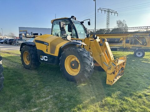 3200 kg Nenntragfähigkeit, 6 m max. Hubhöhe 4 Zylinder JCB Motor mit 109 PS autom. Umkehrlüfter, Nebenabtrieb 4 Gang Powershift Getriebe, 40 km/h VariFlow Axialkolbenpumpe mit 140 l/min Smart Hydraulik, Allradabschaltung 3 Lenkungsarten mit autom. Ausrichtung Kabine Serie III inkl. Heizung, Klimaanlage, Radio gefederter Sitz mit einstellbarer Rückenlehne Servo-Joystick mit 1x Zusatzhydraulik ASW 2x Front, 2x Heck, 2x Ausleger, 1x AHK Q-fit Schnellwechsler mit hydr. Geräteverriegelung Selbstsperr-Differential in der Vorderachse Bereifung: 460/70 R 24 Alliance Agro Industrial Wüstenberg Landtechnik GmbH & Co.KG