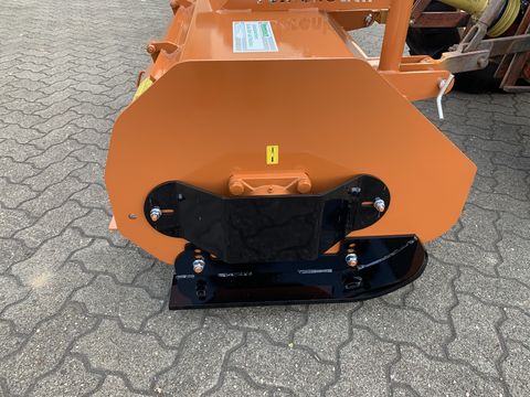 Fehrenbach Umkehrfräse Typ: "Molendino" 1,60 m Gesamtbreite 1,90 m -Vorführgerät- serienmäßig ausgestattet mit: starkem Ölbadwinkelgetriebe mit eingebautem Freilauf stabilem Stahlblechgehäuse Zapfwellendrehzahl 540 U/min Kettenrad 1 1/4'' 14 Zähne oben Ø 50 mm Kettenrad 1 1/4'' 14 Zähne unten Ø 50 mm Heckklappen Dreipunkt-Heckanbau Kat. I und Kat. II verstärktem Fräsrotor, Ø 159x14,2 Pendelkugellager 212 mit Stellschrauben 2 Abstellstützen Gleitkufen Gelenkwelle Walterscheid mit Nockenschaltkupplung 2000 Nm Arbeitswerkzeuge Standardausführung: linke und rechte Fräsmesser aus Hardoxmaterial