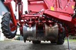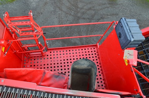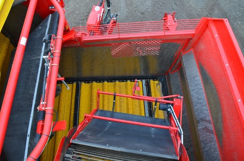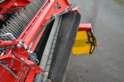 1 Zugkugelkupplung Ø 80 mm 1 Gelenkwelle mit 6 Zähnen 1 Antrieb mit Zapfwellendrehzahl 540 U/min 1 Direktantrieb 1 Reihenweite 75 cm 1 Aufnahmeweite: 600 mm 1 Halbe Dammtrommeln mit Kragen: Ø 390 mm 1 3 Blatt Schar lang 1 Separat verstellbares Mittenschar anstelle von mittleren Sechscheiben 1 Steinsicherung für Spatenschar 1 Mechanische Rodetiefenverstellung 1 Tiefenführung TerraControl 1 Automatische Dammmittenfindung 1 2 Sechscheiben 1 Zusätzliche Sechscheibe außen 1 Siebkanalbreite 1500 mm 1 1. Siebband Teilung 35 mm 1 1. Siebband mit Schlossverbindung 1 Teilungsunabhängiger Reibantrieb 1. Siebband mit Unterstützungswalze 1 Geschwindigkeit 1. Siebband - schnell 1 V2A-Bleche im Schwingrahmen 1 Schwingklopfer im 1. Siebband mit Geschwindigkeitsverstellung vom Terminal 1 2. Siebband Teilung 32 mm 1 2. Siebband mit Schlossverbindung 1 Teilungsunabhängiger Reibantrieb 2. Siebband 1 VarioDrive: stufenloser Antrieb für das 1. und 2. Siebband 1 Speedtronic-Web Vorfahrtsgeschwindigkeits und lastabhängige Siebbandregelung 1 Grobkrautband Abstand 200 mm 1 Verstellung für Abstreifkämme vom Terminal 1 Ölkühler für Eigenhydraulik 1 Band 1. Trenngerät Teilung 40 mm 1 H-Profil Igelstab 1. Trenngerät 1 Abstreifer 1. Trenngerät Glattwalzen-Abstreifer 1 Neigungsverstellung 1. und 2. Trenngerät vom Terminal 1 Höhenverstellung Abstreiferwalze 1. Trenngerät vom Terminal 1 Winkelverstellung Abstreifwalze 1. Trenngerät vom Terminal 1 Schlupfüberwachung 1. Trenngerät und 2. Siebband 1 Beimengenabfuhrband hinter dem 1. Trenngerät 1 2. Trenngerät: SB Igelband mit Platten 1 Abstreifer 2. Trenngerät Glattwalze / Spiralwalzen-Abstreifer 1 Geschwindigkeitsverstellung für 2 Bürsten- bzw. Fingerbänder vom Terminal 1 Neigungsautomatik 1. und 2. Trenngerät 1 Geschwindigkeitsverstellung 1. und 2. Trenngerät vom Terminal 1 Höhenverstellung des Fingerbandes rechts und links, vom Terminal 1 Verlesetisch breit (930 mm) Beimengenbahn (280 mm) 1 Verleseband mit Mitnehmern 1 Beimengenband regelbar, Differenzgeschwindigkeit zum Verlesetisch 1 Steinbunker mit Ablaufband 1 Vorsatzelevator mit Ultraschall-Sensor 1 Bunker 9,0 t 1 Bunkerband mit Tuch 1 Bunkerbefüllautomatik inkl. Automatik für Vorsatzelevator und Befülloptimierung 1 Bunkerkopfabsenkung 1 Kartoffelauslauf am Rollbodenbunker für Kistenbefüllung/Fallbremse 1 Kartoffelauslauf für 1,20 m breite Kisten 1 Hydraulische Klappvorrichtung für Kartoffelauslauf 1 Druckluftbremse 1 Automatische Achsmittenfindung und Neigungsautomatik 1 Bereifung links: 850/50 R30.5, rechts: 1000/50 R25 1 Dreiradfahrwerk TriSys 1 Videosystem SmartView Basic 1 Beleuchtungspaket Basic 1 Visual Protect: CAN-Bus gesteuertes Überwachungssystem 1 Bedienterminal CCI 1200 ISOBUS 1 Multifunktionshebel (ISOBUS-fähig) anstatt der Joystickbox rechts 1 ISOBUS 1 MemoryControl 1 Anbindung an myGRIMME 1 Antriebsmedium Mineral-Öl 1 Load-Sensing Kit mit Steuerleitung zum Traktor 1 2. Stützrad Terra Control 1 Komfortpaket Verlesetisch für VerlesepersonalKontaktdaten: