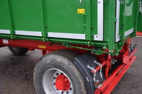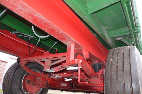 Serienausstattung Bereifung 4x 385/65 R22.5 werkerneuert auf Mittelstegfelgen 80km/h Achsen ADR-Schrägrollenlager-Achsen, 11,3t Achslast (105 km/h) 2050mm Spurbreite, ohne ABS bis 60km/h, Radbremse 406 x 120mm, 130mm Achsvierkant Federn 18t Parabelfederung 2-lagig 100mm breit, zugelassen bis 105km/h, Überlastschutz für hintere Parabelfedern Lenkung Drehschemellenkung mit Kugellenkkranz und typengeprüfter Dreieckzuggabel 1900mm lang, Höheneinstellung sowie Zuggabelentlastung Chassisrahmen Stahl-Schweißkonstruktion; Hauptträger Doppel-T Bremsanlage Zweileitungs-Betriebs-Bremsanlage mit automatisch-lastabhängiger Bremskraftregelung (ALB), 4x Membranbremszylinder, Spindelfeststellbremse für Hinterachse Kippanlage 3-Seiten Kippwerk, hydraulische Mehrkolbenpresse mit kardanischer Aufhängung, 1-Leitungs-System, Kugelkipplager mit Niederhalter hinten, 2 unverwechselbare Steckbolzen, hydr. Hubbegrenzer, Sicherungsseil Kipprahmen Profilstahl-Schweißkonstruktion, 4mm Stahlblechboden Vorderwand feststehend aus finn. Kombi-Multiplexplatte 18mm, WBP verleimt, im Bordwandbereich Verwendung von nichtrostenden VA-Schrauben, feststehende Eckrungen, Trittstufe an der Zuggabel, ergonomische Aufstiegsleiter mit Laufsteg und Unfallschutzbügel gemäß UVV Richtlinien, Klapptritte außen und an der Innenseite der Vorderwand Seitenwände finn.Kombi-Multiplexplatte wie Vorderwand, Platte eingefasst in Alu-Profil (mit integrierter Wasserableitrinne) mit robuster, austauschbarer Gummidichtung, je zwei Seitenbordwände ohne horizontale Teilung, feststehende Mittelrungen mit zwei abnehmbaren Verbindungsrohren, geteilte Zentraluntenentriegelung, Untenentriegelungshebel vorne und hinten mit Übertotpunktspanner, optimal ausgelegt für die Zurüstung einer automatischen Bordwandfernentriegelung Rückwand Grundaufbau wie Seitenbordwand, 1x Kornschieber mittig (480x290mm) mit Hebelbetätigung (links) und abnehmbarer Auslaufschurre, feststehende Eckrungen, Zentraluntenentriegelung, Untenentriegelungshebel links mit Übertotpunktspanner Elektrik 12-Volt-Anlage nach Vorschriften der StVZO mit 7-poligem Verbindungskabel, Dreieckrückstrahler und gelbe Seitenreflektoren, 3-Kammerleuchten (gummigelagert), Kennzeichenleuchten, Positionsleuchten Zubehör stabiler Unterfahrschutz, Kennzeichenhalterung, Unterlegkeil mit Halter, Kunststoffkotflügel hinten, Parkdosen für alle Anschlüsse auf der Zuggabel, Schutzkappen auf Schraubverbindungen, Ruhepunktauflagen für Kippbrücke zur Geräuschdämmung im Fahrbetrieb Lackierung Fahrzeug gestrahlt mit Stahlschrot und zusätzlich entfettet, Dickschichtgrundierung, Versiegelung besonders korrosionsgefährdeter Bereiche mittels Karosserieabdichtungsmasse, Decklackierung in deutschen Qualitäts-Zwei-Komponentenlackfarben. Aufbau: Kröger-Grün, Platten = beidseitig "grün" filmbeschichtet, nicht UV-beständig; Fahrgestell: Kröger-Rot Technische Daten Zul. Gesamtgewicht 18t, Leergewicht ca. 4,1t (in Grundausstattung), Nutzlast ca. 13,9t, Plattformhöhe ca. 1.330mm (in Grundausstattung), Ölbedarf ca. 19,9l Laderaummaße außen ca. Länge 5.300mm x Breite 2.550mm x Höhe 1.300mm, innen ca. Länge 5.235mm x Breite 2.420mm x Höhe 1.300mm, Palettenbreite auch zwischen Mittel- und Eckrungen! (techn. Änderungen vorbehalten; serienmäßig dürfen Fahrzeuge diesen Fahrzeugtyps nur hinter LoF-Zugfahrzeugen migeführt werden, ansonsten ist eine spezielle Fahrzeugausstattung zu wählen; Beratung erforderlich) Bordwandhöhe 1.500mm anstatt 1.300mm 1 ca. 19m³ Ladevolumen, Multiplexplatten ( beidseitig Phenolharz-filmbeschichtet, nicht UV-beständig ) seitliche Kippbrückenverlängerung 200mm hoch 1x 1 seitliche Kippbrückenverlängerung 200mm hoch, beidseitig montierbar, links oder rechts Vorrichtung zur Aufnahme 1 Vorrichtung zur Aufnahme abnehmbare Kippbrückenverlängerung (Schütte) hinten, gesamte Fahrzeugbreite (2480mm x 350mm) OHNE Schütte Aufsteckdreiecke vorne und hinten (OHNE DREIECK) 1 Aufsteckdreiecke vorne und hinten (300mm) OHNE Mitteldreieck mit abklappbarem VERSTÄRKTEM DÜNNWANDIGEM ALU- Spriegelrohr, Durchmesser 70mm, Wandung 4mm + zusätzliche mittlere Querstrebe ca. 300mm von Oberkante Aufbau Querrohre zwischen den Mittelrungen 1 ausgeführt als Trapez 1 Gummilagerung für Spriegelrohr mittig und seitlich gelbe Abdeckplane 1 gelbe Abdeckplane mit Alu-Rollbrett, Handkurbel und seitlich abnehmbaren Anschlagstützen Rückwand horizontal geteilt mit Gummiabdichtsystem 1 Rückwand horizontal geteilt mit Gummiabdichtsystem automatische Anhängerkupplung 1 automatische Anhängerkupplung inklusive Licht-, Luft- und Hydraulikanschluss für 2. Anhänger 1 Seitenmarkierungsleuchten (LED) 1 Positions- und Kennzeichenleuchten in LED 3-Kammer-Rückleuchten eckig, LED-Ausführung, 1 inkl. Blinkerausfallkontrolle Sonderlackierung Aufbau und Bordwände nach RAL-Ton 1 a500,00 1 Gutachten für 40 km/h Zulassung 1 Transportkosten 1 ATHOS Bereifung 385/65R22,5Kontaktdaten: