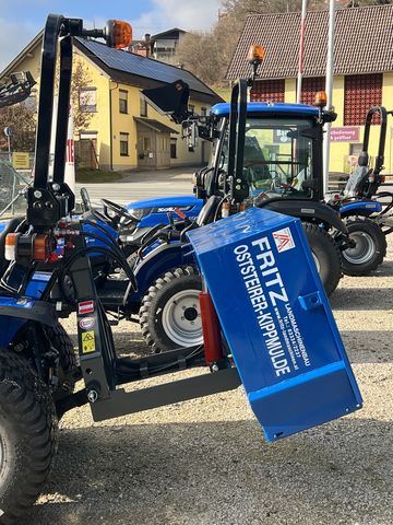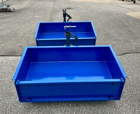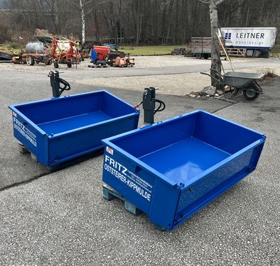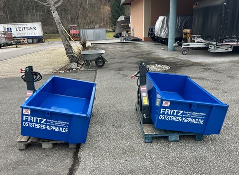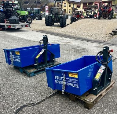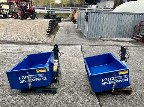 fabriksneue Oststeirer Kippmulde in BLAU-SCHWARZ - Standard 950 * ideales Gerät für die Fronthydraulik zum Transport von Werkzeug * hohe Stabilität und starker Hubzylinder * Maße: 1,40 m x 0,80 x 0,36 m * abklappbare Pendelward mit Kette und Karabiner * Blechstärke 3 mm * stabiler Anbau für Fronthydraulik * SAMT DW wirkende Zylinder * OPTIONAL auch sofort erhältlich mit: seitlich FR für Ecksteher inkl. Laschen und Zurrgurt - 100 Euro Rückwand nach vorne steckbar - 125,00 Euro Die Kippmulde können jederzeit bei uns am Gelände besichtigt werden. Abholung/Zustellung jederzeit möglich. Alle Angaben ohne Gewähr.Nutzlast (kg): 950