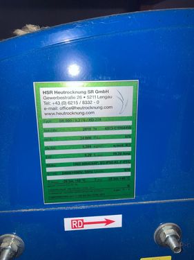HSR Entfeuchter SR30/15 kW VARIO Elite Baujahr: 2019 Anschlussleistung: max. 15kw/26A Gewicht: 530 kg Produkt Highlights: ·hochwertiger GEA Bock Verdichter (Made in Germany) ·Verdichter schwingungsgedämpft gelagert ·Abwärmenutzung von Frequenzumrichter und Steuerung ·schwingungsdämpfende Anacondaleitungen ·2 große Verteilerköpfe für gleichmäßige Kältemittelverteilung ·60 bis 80 Verteilerleitungen, bis zu 336 Rohre im Verdampfer ·2 mm Lamellenabstand ermöglichen kompakte Bauweise ·gleichmäßige Temperaturverteilung über gesamtes Register ·incl. Frequenzumrichter für eine energieeffiziente Trocknung ·große Wartungstüre und Fenster zu den Rohrleitungen ·autom. CPC-Regelung verhindert das Vereisen des Registers ·feinmaschiger Staubfilter ·Isolierte Paneele schützen vor Kondenswasserbildung ·Aluminium Abtropfwanne über den kompletten Boden ·teflonbeschichteter Verdampfer ·ammoniakbeständige Beschichtung am Kondensator ·incl. integrierter Zentralsteuerung HSR Ventilator SR800/9,2 kW Vario Elite Baujahr: 2019 Motorleistung: 9,2 kW mit 11kW Frequenzumrichter Ausführung: ·Einseitig saugender Hochleistungsradialventilator ·6-poliger Motor direkt geflanscht ·pulverbeschichtetes Gehäuse RAL 5010 ·feinmaschiges Ansauggitter ·Inspektionsöffnung (ab SR900) ·inkl. Gummipuffer zur schwingungsgedämpften Montage ·Funkenschutz Verkauf in Kundenauftrag – Standort: 83122 Samerberg|DE ; Stuffer +4.9.8.0.3.2.8.7.4.3 Anlage ist in einem technisch einwandfreien Zustand Änderungen und Tippfehler vorbehalten! Weitere Infos über diese oder andere Heubelüftungsartikel auf Anfrage!