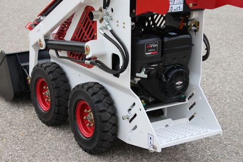 Briggs & Stratton 1-Zylinder Motor 13 PS Hydrostatischer Fahrantrieb mit 4 Radmotoren Ölkühler mit Gebläse LEG-Beleuchtung HUBKRAFT 350 KG Fahrgeschwindigkeit bis 7 km/h Breite bis min. 75 cm Hubhöhe 195 cm Eigengewicht 650 kg Anbauwerkzeuge nach Wunsch