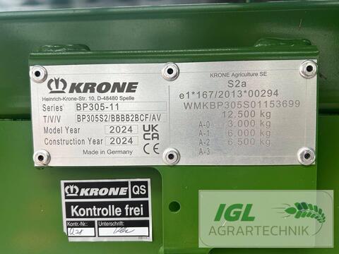 Bereifung (h): 620/50 R22,5, Zustand-Bereifung (h): 80 %, Geschwindigkeit: 60 km/h, Anzahl Messer: 51, Ballenmaß (Breite): 120 cm, Ballenzahl: 7400 Stck, Ballenmaß (min. Durchmesser / Höhe): 70 cm, Kugelkopfkupplung (K80), Garnbindung, Lenkachse, Messersicherung, PickUp, Weitwinkel-Gelenkwelle, ISOBUS, Untenanhängung (Öse), Feuchtemessung ________ KRONE PowerClean Über ein völlig neues hydraulisches Reinigungsgebläse werden die Knoter kontinuierlich gereinigt. Der Clou: Der Luftstrom wird hinter den Garnkästen nach unten abgeleitet und reinigt somit effizient große Teile der Maschine. Dosieranlage Für die BiG Pack der 5. Generation bietet KRONE eine voll integrierte Dosieranlage für Silier- und Konservierungsmittel Garnkästen: Höchster Komfort durch hydraulisches Aufstellen für beste Zugänglichkeit der Maschine oder hydraulisches Absenken für beste Erreichbarkeit der bis zu 15 kg schweren Garnrollen. KRONE V-Knoter Neuer KRONE V-Knoter mit der gewohnten Zuverlässigkeit des Deering-Doppelknotersystems, bei dem keine Garnschnipsel mehr anfallen Presskanal: Bei allen Modellen findet der deutlich längere Presskanal der 1290 HDP Verwendung. Das Ergebnis ist eine bessere Ballenform und höhere Ballengewichte Schneidwerk: Höchste Variabilität dank VariCut - verschiedene Messerkassetten mit bis zu 26 oder bis zu 51 Messern für alle Modelle verfügbar Raffer / VFS Bewährtes noch besser - Erfahren Sie mehr zu den Verbesserungen im variablen Füllsystem (VFS) Großpackenpresse mit Schneidwerk Länge: 8.850 mm (Transportstellung), 9.725 mm (mit PreChop), Breite: 2.995 mm, Höhe: 3.255 mm Ballenmaße = Höhe 0,70 m, Breite 1,20 m, Länge 0,50 - 2,70 m 45 Hübe je Minute Leistungsbedarf ab 140 kW (190 PS) Anhängung Deichsel für Oben- oder UntenanhängungAchtung: Es muss zwingend eine Zugöse, eine Gelenkwelle und ein Stützfuß gewählt werden! Hydrauliksystem Load-Sensing sowie mit Druckumlauf zu betreiben Pick-up Rollenniederhalter Active Pick-up - Ungesteuerte Pick-up EasyFlow mit aktiv angetriebener Zuführwalze (0850) 2.350 mm Aufnahmebreite nach DIN 11220, mit fünf Zinkenreihen, 55mm Zinkenabstand 16x6.50-8 Pendeltasträder Schneidwerk Rotorschneidwerk VariCut (VC), MessergruppenschaltungEinzelmessersicherungEine seitlich ausziehbare Messerkassette Zuführsystem Überarbeitetes KRONE VFS (Variables Füll-System), einstellbar über das Terminal Absicherung über Nockenschaltkupplung - keine Scherbolzen Presskanal / Presskolben Verlängerter, konischer Presskanal für bis zu 15% höhere Ballendichte ggü. der BiG Pack 1270 HighSpeed Breite obere Pressklappe Automatische Presskraftregelung Elektrische Ballenlängeneinstellung Großdimensioniertes ca. 296 kg schweres Schwungrad Hauptantriebsstrang über Getriebe, keine Ketten, keine Scherbolzen Geteilter Restballenausschieber Knoter Hydraulisch absenkbare und hochschwenkbare, staubdichte Garnkästen, Garnvorrat 30 Rollen, bis zu 15kg Garnrollen LED Arbeitsbeleuchtung für Unternadeln, Garnkästen, Bindung Weitere Ausstattung Maschinenreinigung KRONE PowerClean (1045) Automatische Zentralschmieranlage (inkl. Raffer) Serienmäßig verbaute Reifenabdeckungen und KotflügelSerienmäßig verbauter Heckrahmen für einfache Aufnahme der Zusatzgarnkästen oder eines Dosiermitteltanks Komfort Bordelektronik 1.0 ISOBUS-fähig, ohne Bedienterminal (bei nicht ISOBUS-fähigem Schlepper zusätzlich erforderlich B290; falls kein ISOBUS-Terminal vorh. ist B412, B413 oder B308 zus. zu wählen) (3011) Hardware und Vorbereitung für KRONE SmartConnect Hydraulikanschlüsse am TraktorPick-up-Aushebung: einfachwirkendes SteuerventilVorlauf Steuerblock: einfachwirkendes Steuerventil (NW 15)Rücklauf Steuerblock: Rücklauf Tank (NW 18)Lastmeldeleitung: LS-Anschluss (NW 12)Funktionen: Ballenausschieber, Rollenschurre und (wenn vorhanden) Lenkachse sperren sowie AnlaufhilfeHydr. Stützfuß: Doppelwirkendes SteuerventilBei Schleppern mit Load-Sensing-Hydraulik die dafür vorgesehenen Anschlüsse verwenden.Elektrikanschlüsse am TraktorBeleuchtung der Presse: 7 polige Steckdose DIN ISO 1124Versorgung der elektronischen Steuerung der Presse per ISOBUS-AnschlussTerminalanschluss per In-cab-Steckdose Maschine: 1 x 15216 Großpackenpresse, BiG Pack 1270 VC (BP305-11) Komponenten: Einsatzland 1 x EL_DE Deutschland Bremse 1 x 0510 Druckluftbremse 1 x 1355 V-Knoter Multibale-System - Sechs Doppelknoter; Knotvorgang ohne Garnreste 1 x 0635 VariCut-Schneidwerk 51 Messer Achsen 1 x 0231 Tandemachse gelenkt, 12 t. - 60 km/h Zulassung; bei Verwendung mit BaleCollect nur 40 km/h Zulassung möglich Bereifung 1 x 0394 Bereifung 620/50 R 22.5 154D Pick up 1 x 0850 Active Pick-up: Ungesteuerte Pick-up EasyFlow mit aktiv angetriebener Zuführwalze, Rollenniederhalter, pendelnde Tasträder, 55 mm Zinkenabstand (Aufnahmebreite 2.350 mm nach DIN 11220) Reinigung 1 x 1045 Maschinenreinigung KRONE PowerClean Ballenauswurf 1 x 0720 Rollenschurre Steuerung 1 x 3011 Vorbereitung für KRONE Diagnostics bei Komfort Bordelektronik 1.0 STW Variantengruppe 01 1 x D Export Feuchtemessung 1.0 (Sternrad) mit Anzeige im Terminal 1 x B391 Ja Kugelkopfanhängung 80 1 x B392 Ja Gelenkwelle, Weitwinkelgelenk einseitig, 1 3/8, Z= 1 x B402 Ja Walterscheid Hydraulischer Stützfuß 1 x B397 Ja LED-Beleuchtungspaket (LED-Leisten hinter den Garnkästen, für die Pick- up und als Aufstiegsbeleuchtung) 1 x B399 Ja LED-Arbeitsscheinwerfer Heck 1 x B400 Ja LED-Arbeitsscheinwerfer Seitenhauben (nur in Verbindung mit B400) 1 x B448 Ja Ballenzahl 7400 Rücknahme ohne MesserKontaktdaten: