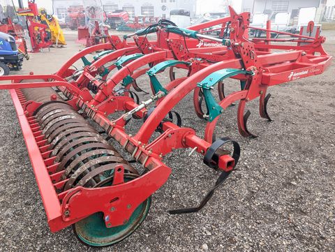Kverneland Grubber CLC Pro classic mit 4 Meter Arbeitsbreite, Blattfedersteinsicherung, 80mm-Hartmetall-Spitzen (Tigerkralle), gedrehte Leitbleche, Zinkenzustreicher, Tiefeneinstellung manuell, Dachringwalze, Beleuchtung/ Warntafeln. Gewicht 2800kg Flügelschare sind optional erhältlichZinken (Stk.): 13