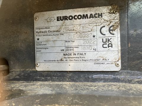 Eurocomach 18ZT • Baujahr 2022 Ersteinsatz 2023 • 420 Betriebsstunden • Yanmar Motor •Verstellfahrwerk •Schutzdach abnehmbar •Hammerleitung •mit mechanischen Schnellwechsler und Geel Löffelsatz 30/60/100 hydr.Böschungslöffel •Preis auf Anfrage, Umsatzsteuer ausweisbar weitere Auskünfte per Telefon oder WhatsAppKontaktdaten: