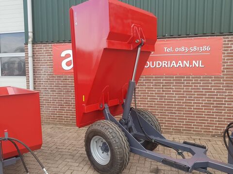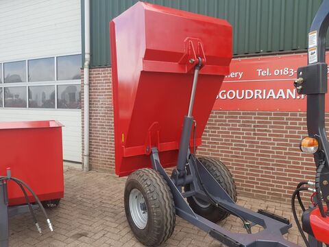 == Overige details (NL) == AGM mini kiepkar • Ideaal voor campings, hoveniers, etc • Dubbelwerkende cilinders • Domex bak 4 mm gezet • Schuine kant in de bak • Banden 11.5/80 x 15.3 • Draaibaar trekoog • Vast steunpoot • Inhoud ca 1500 liter Staat: Nieuw Bouwjaar: 2020Kontaktdaten: