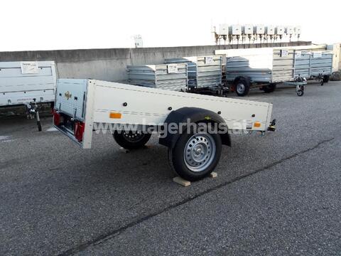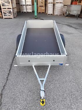 Humbaur PKW Anhänger H 752010 Gesamtmaße: 2970 x 1537 x 800 mm Innenmaße: 2050 x 1095 x 300 mm Ladehöhe: 500 mm Höchstzulässiges Gesamtgewicht: 750 kg Nutzlast: 614 kg Eigengewicht: 136 kg Einachs ungebremst V-Zugdeichsel Bordwände aus eloxiertem, doppelwandigen Aluminiumprofil Feste Stirnwand und Klappe mit stabilen Verschlüssen Eckrungen mit Einsteckmöglichkeit Bodenplatte 12 mm stark 4 Zurrbügel in den Seitenbordwänden integriert Zugkraft pro Zurrbügel: 400 kg 13 poliger Lichtstecker Multifunktionsbeleuchtung 13 Zoll Bereifung ; Artnr.:04837, Standort der Maschine: RLH ZwettlZul. Gesamtgewicht (kg): 750