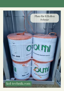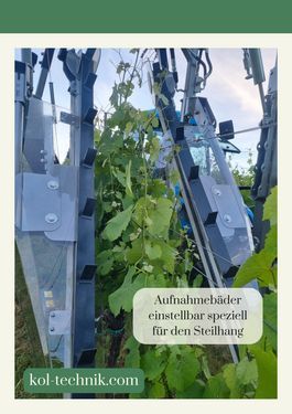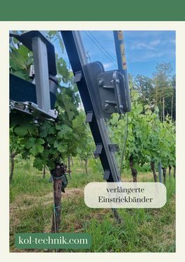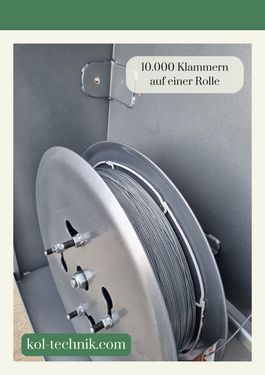 Dank des stabilen Rahmens mit Parallelogrammatik und den sanften Gummiförderbändern können die Reben besonders schonend eingebunden werden. Die Verwendung von Kurztriebbändern und vor Ort gefertigten runden Klammern bietet klare Vorteile. Die runden Klammern verhindern eine Beschädigung der Schnur, was ein einfaches Entfernen der Schnur nach der Ernte ermöglicht. Auf der Rückseite befindet sich ein Magazinbehälter, der Platz für 6 Rollen Schnur und Klammern für etwa 6 Hektar bietet. Der große Klammer-Vorrat spart viel Zeit, da das Nachfüllen des Magazins deutlich reduziert wird. Für weitere Informationen stehen wir Ihnen gerne telefonisch oder per Email zur Verfügung. Eine Besichtigung der Maschine/des Angebotes ist nach telefonischer Vereinbarung möglich. Die Firma KOL-Technik befindet sich nahe der Grenze zu Solwenien, ca. 30 Minuten unterhalb von Graz.Kontaktdaten: