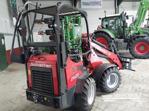 ________ ROPS-Fahrerschutzdach, , Technische Daten Schäffer 2628:, Leistung: 18,5 kW (25 PS), Betriebsgewicht: 1.850 kg, Geschwindigkeit: 20 km/h, Länge mit Standardschaufel: 3.550 mm, Breite: 1.060 - 1.260 mm, Höhe mit Fahrerschutzdach: 2.200 mm, Wenderadius: 820 mm, Hubhöhe (WZ-Drehpunkt): 2.800 mm, optional: 3.110 mm, Hubkraft: 1.600 kg, Kipplast gerade (Palettengabel): 789 - 941 kg, Kipplast gerade (Schaufel): 1.041 – 1.191 kg, , Serienausstattung Schäffer 2628:, 3-Zylinder-Dieselmotor Kubota D1105, hydrostatischer Allradantrieb mit automotiver Steuerung, Hochdruck-Antrieb HD-plus, Original Schäffer-Achsen, Kombi-Ölkühler, Trommelbremse als Betriebs- und Feststellbremse, wartungsfreies Knick-Pendelgelenk, Fahrerschutzdach, Rückhaltesystem, 1x LED-Arbeitsscheinwerfer vorne auf Schwinge, Parallelführung, Zusatzsteuergerät mechanisch bedienbar, Arbeitshydraulik Serie 33 l/min, optional 42 l/min., einstellbare Lenksäule, Betriebsstundenzähler, Tank- und Temperaturanzeiger, Heckgewicht-Endplatte, Schnellwechselrahmen SWH mit hydraulischer Verriegelung, Zusatzausstattung:, , Hinterwagen mit verbreiterten Kotflügeln, Koffergewicht 73 kg, druckloser Rücklauf, Hydraulikanschlüsse in Ausführung Steckkupplungen, Zahnradpumpe verstärkt 14 ccm, LED-Arbeitsscheinwerfersatz 800 Lumen (2x vorne und 1x hinten), Batterie-Hauptschalter, Abschleppvorrichtung mit Bolzen und Zurrösen, Zyklon (Vorfilter für Luftreinigung), Bereifung: 31x15.5-15 AS 5-Loch, ET -37, Aufnahmenrahmen Euro-WS, hydraulische Verriegelung Heinrich Schröder Landmaschinen KG Westerstede