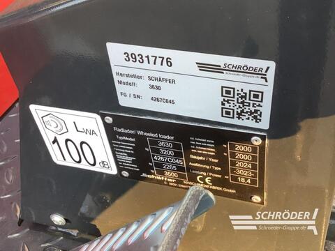 ________ Technische Daten Schäffer 3630:, Leistung: 18,5 kW (25 PS), Betriebsgewicht: 2.300 kg, Geschwindigkeit: 20 km/h, Länge mit Standardschaufel: 4.110 mm, Breite: 1.200 - 1.370 mm, Höhe: 2.230 mm, Wenderadius: 1.020 mm, Hubhöhe (WZ-Drehpunkt): 2.880 mm, optional 3.110 mm, Hubkraft: 1.700 kg, Kipplast gerade (Palettengabel): 1.148 – 1.421 kg, Kipplast gerade (Schaufel): 1.495 – 1.817 kg, , Serienausstattung Schäffer 3630:, 3-Zylinder-Dieselmotor Kubota D1703-M Di, hydrostatischer Allradantrieb mit Gelenkwelle und automotiver Steuerung, Hochdruck-Antrieb HD-plus, HTF (High Traction Force), SPT (Schäffer Power Transmission), hydraulischer Schnellgang 20 km/h , Original Schäffer-Achsen, Kombi-Ölkühler, wartungs- und verschleißfreie Lamellenbremse im Ölbad als Betriebs- und Feststellbremse, wartungsfreies Knick-Pendelgelenk, Rückhaltesystem (Fahrerschutzdach), 1x LED-Arbeitsscheinwerfer vorne auf Schwinge, Parallelführung, Zusatzsteuergerät mechanisch bedienbar, Arbeitshydraulik Serie 37 l/min, optional 42 l/min., einstellbare Lenksäule, Betriebsstundenzähler, Tank- und Temperaturanzeiger, Heckgewicht-Endplatte, Sitzkontaktschalter, Schnellwechselrahmen SWH mit hydraulischer Verriegelung, Zusatzausstattung:, , Hinterwagen mit verbreiterten Kotflügeln, ROPS-Fahrerschutzdach, Koffergewicht 95 kg, druckloser Rücklauf, Zahnradpumpe verstärkt 19 ccm, Feststellraste elektrisch für Zusatzsteuergerät, Zusatzsteuergerät elektrisch, Ausführung ELPRO, elektrisch oder proportional über heben/senken, Belechtungsanlage, TÜV-Gutachten Arbeitsmaschine selbstfahrend <25 km/h, LED-Arbeitsscheinwerfersatz 800 Lumen (2x vorne und 1x hinten), Batterie-Hauptschalter, Abschleppvorrichtung mit Bolzen und Zurrösen, Bereifung: 31x15.5-15 AS 6-Loch, ET -70, Aufnahmenrahmen Euro-WS, hydraulische Verriegelung Heinrich Schröder Landmaschinen KG Völkersen