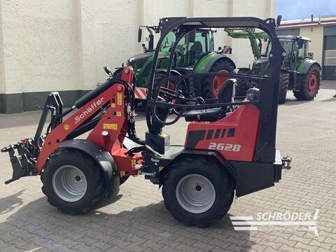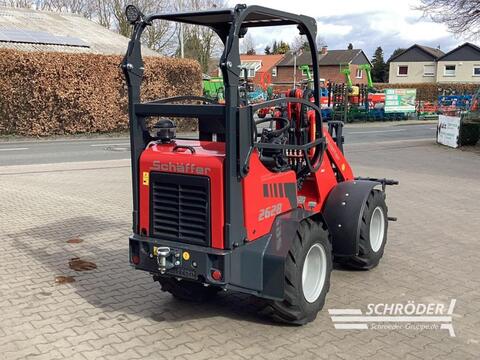 ________ ROPS-Fahrerschutzdach, , Technische Daten Schäffer 2628:, Leistung: 18,5 kW (25 PS), Betriebsgewicht: 1.850 kg, Geschwindigkeit: 20 km/h, Länge mit Standardschaufel: 3.550 mm, Breite: 1.060 - 1.260 mm, Höhe mit Fahrerschutzdach: 2.200 mm, Wenderadius: 820 mm, Hubhöhe (WZ-Drehpunkt): 2.800 mm, optional: 3.110 mm, Hubkraft: 1.600 kg, Kipplast gerade (Palettengabel): 789 - 941 kg, Kipplast gerade (Schaufel): 1.041 – 1.191 kg, , Serienausstattung Schäffer 2628:, 3-Zylinder-Dieselmotor Kubota D1105, hydrostatischer Allradantrieb mit automotiver Steuerung, Hochdruck-Antrieb HD-plus, Original Schäffer-Achsen, Kombi-Ölkühler, Trommelbremse als Betriebs- und Feststellbremse, wartungsfreies Knick-Pendelgelenk, Fahrerschutzdach, Rückhaltesystem, 1x LED-Arbeitsscheinwerfer vorne auf Schwinge, Parallelführung, Zusatzsteuergerät mechanisch bedienbar, Arbeitshydraulik Serie 33 l/min, optional 42 l/min., einstellbare Lenksäule, Betriebsstundenzähler, Tank- und Temperaturanzeiger, Heckgewicht-Endplatte, Schnellwechselrahmen SWH mit hydraulischer Verriegelung, Zusatzausstattung:, , Hinterwagen mit verbreiterten Kotflügeln, Koffergewicht 73 kg, druckloser Rücklauf, Hydraulikanschlüsse in Ausführung Steckkupplungen, Zahnradpumpe verstärkt 14 ccm, Feststellraste mechanisch für Zusatzsteuergerät, LED-Arbeitsscheinwerfersatz 800 Lumen (2x vorne und 1x hinten), Batterie-Hauptschalter, Abschleppvorrichtung mit Bolzen und Zurrösen, Zyklon (Vorfilter für Luftreinigung), Bereifung: 31x15.5-15 AS 5-Loch, ET -37, Aufnahmenrahmen Euro-WS, hydraulische Verriegelung Heinrich Schröder Landmaschinen KG Langförden