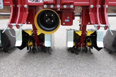 Arbeitstiefe 150 mm Rahmen 150 mm aus Stahlguss Kettengehäuse aus Stahlguss Sechskant-Antriebswelle 41 mm Schwingwende Schutzhauben Optionen: Frontanbau, Hydraulisch klappbar, Fingerhacke, Scheiben- oder Scharhäufler