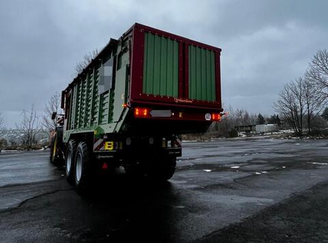 Bereifung (v): 800/45R30,5, Zustand-Bereifung (v): 90 %, Bereifung (h): 800/45R30,5, Zustand-Bereifung (h): 90 %, Geschwindigkeit: 40 km/h, Anzahl Messer: 48, Fuhrenzahl: 409, Kugelkopfkupplung (K80), Plane, Rollenniederhalter, Schneidwerk, Weitwinkel-Gelenkwelle, ISOBUS, Deichselfederung, Betriebsstundenzähler, Fuhrenzähler ________ Strautmann MAGNON 10-470 Baujahr: 2024 Kurzschnitt-Lade-/Dosierwagen: Fuhrenzahl: 409 Stunden: 392 Serienausstattung: Pick-up - Strautmann Flex-Load Pick-up mit 6 V-förmig angeordneten Zinkenreihen mit Kunststoffzinken und Doppelrollen-Niederhalter - Hydraulischer Antrieb, automatische Drehzahlsteuerung abhängig von der Fahrgeschwindigkeit Continuous-Flow-System - Leitwalze über Kette angetrieben, abgesichert über Reibkupplung Förderaggregat: - Spiralrotor mit 8 Zinkenreihen, Durchmesser 840 mm, Gesamtbreite 2100 mm, Förderbreite 1750 mm - Seitliche Integralteile mit 6 mm starken Schneckenwindungen (175 mm breit) - Voll verschweißte Zinkenringe aus Feinkornstahl - 17 mm breite Hardox-Zinkenplatten mit Auftragsschweißung - Antrieb über seitliches Ölbadgetriebe mit Planetenantrieb im Rotor Schneidwerk: - Strautmann Exact-Cut Schneidwerk mit 48 Messern auf einer Ebene für 35 mm theoretische Schnittlänge - Messer für beidseitige Verwendung durch doppelte Schneide - Einzelmessersicherung mit zentraler Messerverriegelung für werkzeugloses Ein- und Ausbauen - Messerbalken ist hydraulisch ausschwenkbar und über Gewindespindeln nachstellbar Aufbau: - Ganzstahlaufbau mit großer Einstiegstür und Aufstiegsleiter für bequemes Einsteigen in den Laderaum - Schwenkbare Stirnwand sorgt für 5 m³ zusätzliches Ladevolumen bei gleichzeitig kompakter Bauweise - Plattform mit Stahlboden - Integrierte Ladeautomatik über Tastbügel garantiert eine gleichmäßige und vollständige Ausladung des gesamten Laderaums - Stabile Heckklappe mit mechanischer Verriegelung - Laderaumbeleuchtung (3x LED-Lichtleiste), 2x Arbeitsscheinwerfer - LED (hinten rechts und links auf Kotflügel) Transportboden: - Hydraulischer Transportboden mit stufenloser Verstellung - Beidseitiger Antrieb, 2-Stufen-Schaltung und Reversierung - Vier verschleißfeste, wartungsfreundliche Laschenketten Dosieraggregat: - wahlweise mit 3 Dosierwalzen - gleichmäßige Ablage des Futterteppichs über die gesamte Silolänge - schräg angestellte Reißzähne ermöglichen einen schnellen Entladevorgang Antrieb: - Zapfwellendrehzahl 1000 U/min Anhängung: - Hydraulische Knickdeichsel mit zwei doppeltwirkenden Zylindern und absteckbarem Stützfuß - Gelenkwellenlagerung auf der Deichsel - Deichselfederung über Stickstoffspeicher Technische Daten: Gesamtabmessungen (Bereifung: 710/50 R 26,5) - Länge: 10,530m - Radaußenbreite: 2,81 m - Höhe (ohne aufsatz 90 mm): 3,90 m Laderaumabmessungen: - Höhe: 2,08 m - Breite: 2,40 m - Länge: 7,80 m Eigengewicht: - Eigengewicht in Grundausrüstung: 11.700,00 kg - zul. Gesamtgewicht: 24.000,00 kg - Stützlast: 4.000,00 kg - Achslast: 20.000,00 kg Leistungsbedarf: - ab 154 KW / 210 PS Ladevolumen: - mittlerer Pressung: 86 / 82m³ - nach DIN 11741: 46 / 44 m³ Zusatzangabe: - Typ Förderaggregat: Rotor - Pick UP: 2,25 m - 48 Stk. Messer - theoretische Schnittlänge von 35 mm Zusatzausrüstung: - EU Typengenehmigung 40 km/h - Hydr. Tandem-Fahrwerk (BPW) mit Nachlauflenkung 40 km/h, Radstand 1820 mm, Spur 2100 mm, Bremse 410x180, 20 t Achslast (für Bereifung 30,5") - 4 x Rad kpl. 800/45 R 30,5 176D ET-50, 10-Loch, Vredestein Flotation Trac - 2-Leitungs-Druckluftbremse mit ALB (für Tandem-Fahrwerk) - Ohne Federung für hydr. Tandem-Fahrwerk - Deichsel Untenanhängung mit Zugkugelkupplung, 4 t Stützlast - Bedienung über ISOBUS Pro (bei Nachlauflenkung und Abdecksystem) - ISOBUS-Bedienterminal 5" - Hydraulikkupplungen mit Load-Sensing Anschluss - Schneidwerk mit 48 Messern - Flex Load Pick up - Aufbau für Magnon CFS 470 DO - Abdecksystem (Laderaum im Schwenkbereich der Heckklappe nicht abgedeckt) - Gelenkwelle mit Nockenschaltkupplung 2200 Nm einseitig Weitwinkel Z=6 1 3/8 - Seitenmarkierungsleuchten - Umrissbeleuchtung - 2 x Arbeitsscheinwerfer LED 1 x links und 1 x rechts vorne unter der Plattform - Zusatztastrolle hinter der Pick-up - Kanalabdeckung für Mais - Anschlusskabel für Siliermittelpumpe - Betriebsanleitung DE - 2 Satz Messer ( 48 Stück ) Intern: 110748 Mwst 19% ausweisbar! Maschine befindet sich im Zugang, weitere Bilder und Laufleistung folgen.Kontaktdaten: