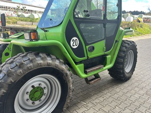 Merlo Telekoplader Bereifung neuwertig Geschwindigkeit: 20km/h Tragkraft: 3400kg Hubhöhe: 7m Leergewicht: ca. 7to Schnellwechselrahmen mit hydr. Verriegelung Zugmaul 3 Lenkarten: Allrad, Vorderrad, Hundegang zusätzlicher Hydraulikkreis ohne Anbau Werkzeug Ortner Land & Baumaschinen