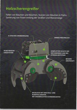 Einzigartiges Design und robuste Konstruktion Vollständig geschlossener Antriebseinheit = keine Beschädigung, keine Undichtheit Sicherer Griff von unregelmäßigen Formen PATENTIERTES ASYNCHRONES GREIFSYSTEM für bessere Manövrierfähigkeit. 360° Rotation für präzisere und flexiblere Materialhandhabung Innovatives Greifdesign Verschleißfeste, austauschbare Zähne an den Enden des Greifers Option: 3 Jahre Garantie EINE BASISEINHEIT - VIELE MÖGLICHKEITEN LANDWIRTSCHAFT: Greifer, Sortiergreifer, Mehrzweckgreifer, Steingreifer, Biomassegreifer, Ballengreifer, Universalgreifer, Mulcher, Mulchkopf BAUWIRTSCHAFT: Abbruchgreifer, Schüttgutgreifer, Schalengreifer, Siebgreifer, Baggergreifer, Bagger, Radlader, Hoflader, Teleskoplader FORSTWIRTSCHAFT: Fällgreifer, Westtech, Scherengreifer, Baumschere, Greifersäge, Holzgreifer, Astsäge, Astschere. Stammgreifer, Baumscherengreifer MD 3.0 .. 3 bis 6 Tonnen ………………. MD 6.0 .. 5 bis 9 Tonnen MD 9.0 .. 8 bis 14 Tonnen …………….. MD 12.0 .. 10 bis 15 Tonnen MD 16.0 .. 15 bis 20 Tonnen …………. MD 20.0 .. 19 bis 22 Tonnen