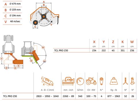 Arbeitsbreite 230 cm Dreipunktanbau KAT II Getriebe 540 U/min mit Freilauf SCHLEGEL MT DOPPELSCHNEIDE FEDERBELSTETE ANFAHRSICHERUNG DOPPELTES GEGÄUSE MIT HARDOX INNENBLECH Rotor mit zweireihigen Pendelrollenlager Selbstreinigende Stützwalze mit Doppel-Pendelrollenlager Verstellbare Gleitkuven Abstell-Stützfüße Gelenkwelle