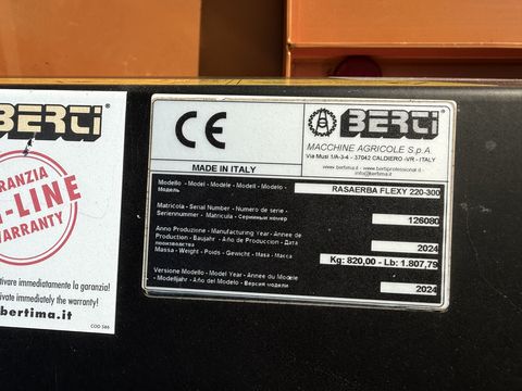 Berti Flexy 220-300 Sichelmäher, hydraulisch verstellbarer Arbeitsbreite von 220 bis 300 cm, Laufwalze höhenverstellbar, Laufräder fix und höhenverstellbar, Messerträger mit bewegliche Messer, Grasauswurfklappen beidseitig, Kettenschutz vorne und hinten, Getriebe 540 U/min, Gelenkwelle mit Kupplung und Freilauf, usw.Hektar (ha): 20