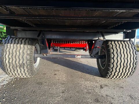 Hier sehen Sie einen gut ausgestatteten Ladewagen von Landsberg aus dem Jahr 1997 - den Typ Ladeplus 35-5 mit der internen Typenbezeichnung 103 MAE. Der Landsberg Ladeplus 35-5 ist fast gleich wie der Pöttinger Ladeprofi 2. Der Landsberg Ladeplus 35-5 hat fünf!!! durchgehende Förderschwingen mit Führungen links und rechts und somit auch eine gute Förderleistung - sonst ist er genau baugleich wie der Pöttinger Ladeprofi 2 !! Gleich vorab - der Deckel vorne links ist leider verdellt - man kann ihn zwar so auch montieren - sieht aber nicht so schön aus :-) Das Ladeaggregat ist aber absolut top - und läuft auch ganz ruhig - auch die Heckklappe schließt ganz von alleine. Das Ladevolumen beträgt ca 35 Kubikmeter bei mittlerer Pressung - und nach DIN 22,4 Kubikmeter. Die Ausstattung ist wie folgt: - neue!! und breite Bereifung in der Größe 19.0/45-17 - Auflaufbremse mit Rückfahrautomatik - hydraulische Betätigung der Pick-Up - hydraulische Betätigung der Knickdeichsel - hydraulische Betätigung der selbstschließenden Heckklappe - hydraulischer Kratzbodenantrieb - der Kratzbodenantrieb ist auch vom Wagenheck aus bedienbar - luftgefüllte Gummi-Tasträder an der Pick-Up - einreihiges Schneidwerk mit 16 Messern - erweiterbar auf 31 Messer - zentrale Abschmierleisten für die Förderschwingen - Weitwinkelzapfwelle - ein Scheinwerfer an der Heckklappe Das zulässige Gesamtgewicht beträgt 6,2 Tonnen. Inzahlungnahme und Lieferung möglich. Bitte vor Besichtigung kurz anrufen und einen Termin abstimmen.
