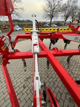 Der Pöttinger Grubber, Modell 2023, ist ein vielseitiges und robustes landwirtschaftliches Gerät, das für die effiziente Bodenbearbeitung entwickelt wurde. Mit einer Arbeitsbreite von 300 cm eignet er sich ideal für mittelgroße bis große Flächen und ermöglicht eine gleichmäßige Bodenbearbeitung. Dieses Modell ist ein 3-Balkengrubber, der mit 11 Scharspitzen ausgestattet ist. Diese sorgen für eine optimale Lockerung und Durchmischung des Bodens. Zusätzlich sind 6 gezackte Einebnungsscheiben integriert, die eine glatte Oberfläche hinterlassen und so die Saatbettvorbereitung erleichtern. Die Ausstattung umfasst außerdem eine hydraulische Tiefenverstellung, die eine präzise Anpassung der Arbeitstiefe ermöglicht. Der Schneidringpacker sorgt für eine effektive Rückverfestigung des Bodens, was die Wasserhaltefähigkeit verbessert und die Keimbedingungen optimiert. Zur weiteren Ausstattung gehören Randbleche, die für saubere Übergänge und eine gleichmäßige Bearbeitung bis an den Feldrand sorgen. Die integrierte Beleuchtung und die Warntafeln gewährleisten eine sichere Nutzung auf öffentlichen Straßen und bei schlechten Lichtverhältnissen. Der Grubber befindet sich in der Zustandsklasse „Gut“ (Klasse 2) und ist mit langlebigen Scharspitzen ausgestattet, die eine lange Lebensdauer und hohe Effizienz garantieren. Dieses hochwertige Gerät von Pöttinger bietet Landwirten eine zuverlässige Lösung für eine effektive und nachhaltige Bodenbearbeitung.Zinken (Stk.): 11