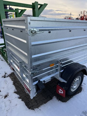 Tieflader mit massiven Bordwänden aus Walzstahl - Hohlkammerprofil, verstärkte Ausführung mit durchgehendem Rohrscharnier bei Rückwand Ladekasten verschweißt und tauchbadverzinkt serienmäßig auch vordere Bordwand klappbar (STK) durchgehende Zugdeichsel mit verzinktem Abschlussträger verschraubt Anbindemöglichkeit zur Ladungssicherung Stützrad in Serienausstattung enthalten Anschraubkonsolen für Abstellstützen Aufsatzwände 600mm Flachplane Kastengröße 2.006 x 1.250 x 400 mm HzG 1000kgZul. Gesamtgewicht (kg): 1000
