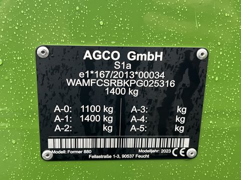 Newly built Fendt Former 880 with year of construction 2023. Specifications Year of construction 2023 Newly built machine Working width 7.20 – 8.00 meters 12 tine arms per rotor Options: Tandem sets under rotors Electrohydraulic individual lifting left/right Wide-angle PTO Transport wheels 300/80-15.3Kontaktdaten: