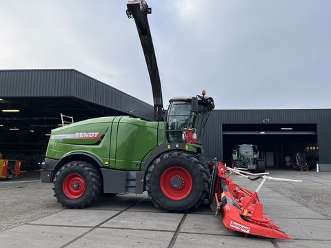 Used Fendt Katana 85S4. Built in 2018 and with 1,937 operating hours. Chassis 40 km/h version Rear axle, sprung, reinforced Chopping Unit Universal Chopping Drum / 28 Corn Blade Set / 28 Automatic Counter-Adjustment Heavy-Duty Wear Parts Set V-Cracker Roller Standard Discharge Spout Discharge Spout Extension Corn Counter-Blade Cabin Automatic adjustment of ground contours Comfort cab with all-round visibility Comfort seat with air suspension Cooling for storage box Side and rear windshield washer system Electric rearview mirror with high-power HSP Headlight on front roof 3-pair LED work lights LED work lights on mirror bracket Maintenance compartment lighting (L) Camera package Radio player preparation CD radio (MP3) with h 2 additional coaxial speakers Quick steering system VarioGuide controller GSM VarioDocPro Vario terminal 10.4" incl. Va Flow and output measurement Track guidance steering sensor Katana cruise control WITHOUT immobilizer Structure Warning system, maximum width 3.30 m Air brake system Silage additive dosing system Fuel tank + water tank Dosing system preparation Rear double-acting valve Nature Green paint, Terra Red rims Reversible fan Attachments Kemper p3002, built in 2018 Kemper 375+, 10-row, built in 2021 Other Fire extinguisher Drive shaft 1 for attachment Drive shaft 2 for attachment Fendt Katana toolbox Tyres Front tyres: 800/70R38 173A8 Rear tyres: IF620/75R30 164DBereifung vorne: 800/70R38 173A8