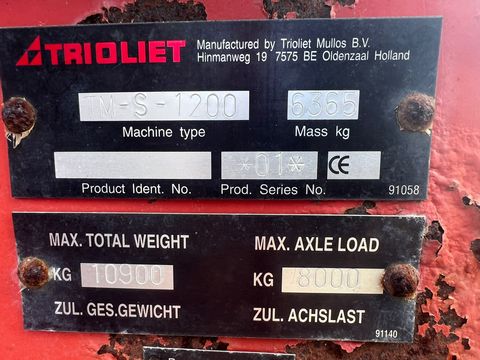 Trioliet TM-S 1200 Capacity: 12 cubic meters, 4500 kg. Own weight: 6365 kg. Maximum weight allowed: 10,900 kg. With self-loading Scale. Drive shaft included, New knives, Discharge in the front. Import Holland In stock. Very good condition. ------- ------ Contacts on main page: - Gerrie (english, german, dutch, romanian) - Ioan (english, german, romanian) - Abel (hungarian, english, romanian)Kontaktdaten: