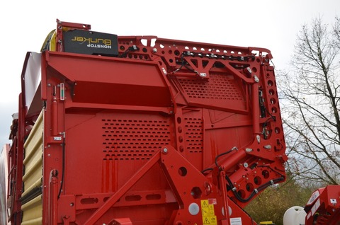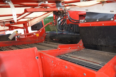 1 Vollständige EU-Typgenehmigung 1 Ausstattungspaket Comfort-Line 1 Anhängung Zugkugelkupplung Ø 80 mm 1 Gelenkwelle 1 3/8" mit 6 Zähnen 1 Antrieb mit Zapfwellendrehzahl 540 U/min 1 Direktantrieb 1 Reihenweite 75 cm 1 Aufnahmeweite: 600 mm 1 Halbe Dammtrommeln mit Kragen: Ø 390 mm 1 2-Blatt-Schar lang 1 Separat verstellbares Mittenschar anstelle von mittleren Sechscheiben 1 Steinsicherung für Spatenschar 1 Rodetiefenverstellung vom Terminal 1 Tiefenführung TerraControl 1 2. Stützrad Terra Control 1 Dammmittenfindung über Schleifkufe 1 2 Sechscheiben 1 Zusätzliche Sechscheibe außen 1 Ohne Aufnahmeband 1 Siebkanalbreite 1500 mm 1 1. Siebband Teilung 35 mm 1 1. Siebband mit Schlossverbindung 1 Teilungsunabhängiger Reibantrieb 1. Siebband mit Unterstützungswalze 1 Geschwindigkeit 1. Siebband - schnell 1 V2A-Bleche im Schwingrahmen 1 Schwingklopfer im 1. Siebband mit Geschwindigkeitsverstellung vom Terminal 1 2. Siebband Teilung 32 mm 1 2. Siebband mit Schlossverbindung 1 Teilungsunabhängiger Reibantrieb 2. Siebband 1 VarioDrive: stufenloser Antrieb für das 1. und 2. Siebband 1 Grobkrautband Abstand 200 mm 1 Rückhaltefeder vorne Grobkrautband Ausführung "standard" 1 Verstellung für Abstreifkämme vom Terminal 1 1 Krautabstreifwelle unter dem Grobkrautband, hydraulisch angetrieben 1 Ölkühler für Eigenhydraulik 1 Band 1. Trenngerät Teilung 40 mm 1 H-Profil Igelstab 1. Trenngerät 1 Abstreifer 1. Trenngerät Glattwalzen-Abstreifer 1 Neigungsverstellung 1. und 2. Trenngerät vom Terminal 1 Höhenverstellung Abstreiferwalze 1. Trenngerät vom Terminal 1 Winkelverstellung Abstreifwalze 1. Trenngerät vom Terminal 1 Schlupfüberwachung 1. Trenngerät und 2. Siebband 1 Beimengenabfuhrband hinter dem 1. Trenngerät 1 2. Trenngerät: Igelband mit Stäben 1 Band 2. Trenngerät Teilung 40 mm 1 H-Profil Igelstab 2. Trenngerät 1 Abstreifer 2. Trenngerät Glattwalzen-Abstreifer 1 Ausführung Abstreifer 2. Trenngerät: Dreifachabstreiferwalze 1 Geschwindigkeitsverstellung für 2 Bürsten- bzw. Fingerbänder vom Terminal 1 Neigungsautomatik 1. und 2. Trenngerät 1 Geschwindigkeitsverstellung 1. und 2. Trenngerät vom Terminal 1 Winkelverstellung Abstreifwalze 2. Trenngerät vom Terminal 1 3. Trenngerät: Igelband mit Platten 1 3. Trenngerät: ClodSep (UB) -Trenngerät: zwei zweireihige Finger- abstreifbänder 1 Abstreifer 3. Trenngerät Glattwalze / Spiralwalzen-Abstreifer 1 Höhenverstellung des Fingerbandes rechts und links, vom Terminal 1 Höhenverstellung der Abstreifwalzen vom 2. Trenngerät vom Terminal 1 Mechanische Höhenverstellung der Abstreifwalzen vom 3. Trenngerät 1 Turbo Clean 1 Verlesetisch (1100 mm) 1 Komfortpaket Verlesetisch PRO 1 Beleuchtung für Verlesetisch 1 Verleseband mit Mitnehmern 1 Beimengenband Ausführung "Stabband" 1 Beimengenband regelbar, Differenzgeschwindigkeit zum Verlesetisch 1 Beimengenquerband reversierbar vom Terminal 1 Steinbunker mit Ablaufband 1 Vorsatzelevator mit Ultraschall-Sensor 1 NonstopBunker 7,5 to mit rücklaufendem Bunkerboden 1 Bunkerband mit Tuch 1 Schmieranlage für Bunkerkette 1 Kartoffelauslauf am Rollbodenbunker für Kistenbefüllung/Fallbremse 1 Kartoffelauslauf für 1,20 m breite Kisten 1 Hydraulische Klappvorrichtung für Kartoffelauslauf 1 Druckluftbremse 1 Zulässige Höchstgeschwindigkeit 40 km/h 1 Automatische Achsmittenfindung und Neigungsautomatik 1 Bereifung 850/50 R30.5 1 Teleskopierbare Achse für das linke Hinterrad 1 Wetterdach ohne Seitenteile 1 Multifunktionshebel (ISOBUS-fähig) anstatt der Joystickbox rechts 1 Antriebsmedium Mineral-Öl 1 Load-Sensing Kit mit Steuerleitung zum Traktor 1 ISOBUS Grundausstattung 1 ISOBUS-Bedienterminal - CCI 1200 1 Memory Control 1 SmartView Monitor 1 Kamerapaket SmartView PRO 1 Visual Protect Pro - Funktionsüberwachung 1 Speedtronic-Web: Vorfahrtgeschwindigkeits- und lastabhängige Siebbandregelung 1 Speedtronic-Sep: Automatische Geschwindigkeitsverstellung der Trenngeräte 1 Anbindung an myGRIMMEKontaktdaten: