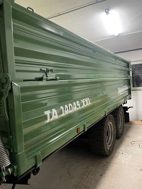 Privatverkauf! Sehr schöner, restaurierter Brantner Kipper TA 13045. Bis auf kleine Gebrauchsspuren (kleine Dellen) ist die Maschine in einem neuwertigen Zustand. Kipper wurde bis auf Brückenboden komplett sandgestrahlt, grundiert und 3x lackiert. Alle Radlager sowie Bremsen wurden kontrolliert (keinerlei Mängel festgestellt). Brückenmaße 4,5x2,2, Grundwand 60, Aufsatzwände 2x50, Silogitter vorne und hinten, Tandemfahrwerk Blattfeder, hydr. Stützfuß, extremstarke Achsen (80x80), 8-Loch-Felgen, neuwertige MPT-Reifen (355/60/R18), Druckluftbremse und hydr. Bremse, Viehanhängeösen, neue Lichtanlage inkl. Begrenzungslicht, Zugmaul und 7-polige Steckdose im Heck, Wassermaß 16m³, Hydschläuche neu. Wir freuen uns auf Ihre Anfrage!Zul. Gesamtgewicht (t): 12940