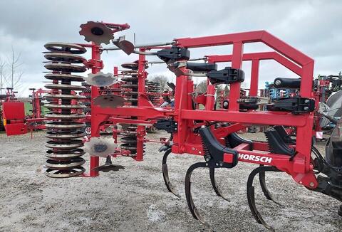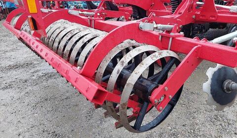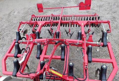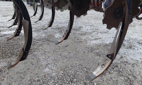Hydraulische Klappung, Heckanbau ________ 3 Zinkenreihen 13 Zinken hydraulische Klappung und Tiefenverstellung gefederte Einebnungsscheiben RollCut-Packer mit HM+ Spitzen für minimalen WartungsaufwandZinken (Stk.): 13