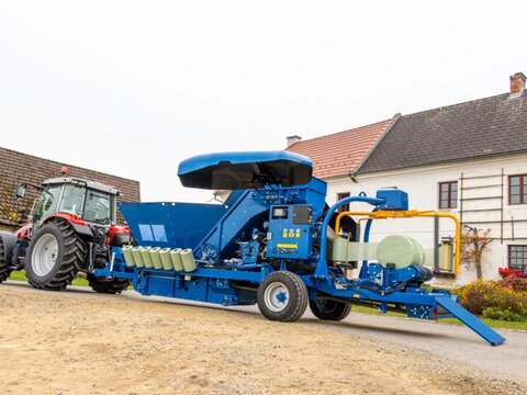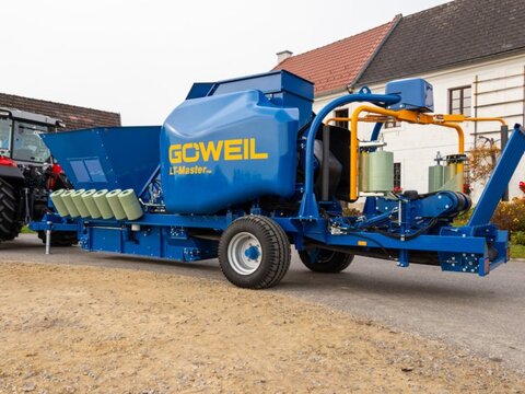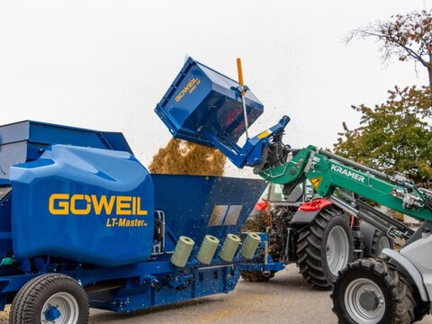 Göweil Rundballenpresse Wickelkombination - Typ: LT-Master F60 - Festkammerpresse - Ballenmaße 0,60x0,60m - Hydraulisch angetriebene Presskammer - kombinierte Doppelbindung für Netz und Folie Zubringer und Dosierung - Geräumiger Bunker mit 3,5m³ Volumen und Sichtfenster - Dosierung über Steilförderer in Presskammer - Rückführband aus PVC unter der gesamten Maschine zur Vermeidung von Bröckelverlusten Wickler - hydraulisch Kippbarer Wickeltisch für bessere Ballenübergabe - Doppelwickelarm - Folienvorstrecker für 250mm und 375mm - Folienabschneider - mechanisch abklappbare Ballenablagerampe - Handsender mit Funk für Ballenablage - Folienüberwachung und Einfolienbetrieb Steuerung - Terminal PROFI plus L - Bordhydraulik mit Ölkühler - automatische Zentralschmieranlage für Öl - Bereifung 380/55-17 - Hydraulisch verstellbare Liftachse - Folienmagazin für 14 Rollen - LED Arbeitsscheinwerfer - Gewicht ca. 4420kg Für verschiedenste press- und wickelbare Materialen: Mais, CCM, Luzerne, Gras, uvm... Bilder können Zusatzausstattung beinhalten. Optional: - Kamerasystem - Vollautomatische Zentralschmierung für Fett Gerne können wir Ihnen eine Finanzierung über eine Partnerbank anbieten.Kontaktdaten: