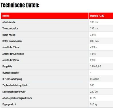 Fransgard Aufbereiter Neuwertig Arbeitsbreite 180cm Transportbreite 235cm- PDF Datenblatt