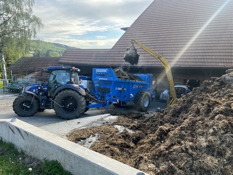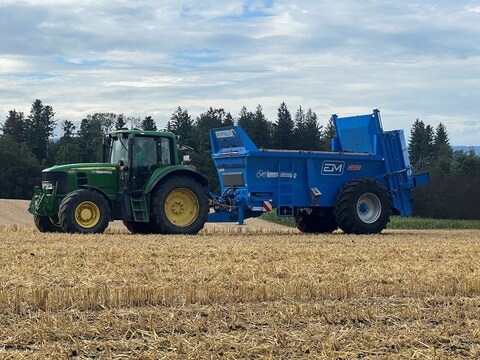 Robuster Miststreuer mit 12.5 m3 InhaltBereifung 650/75R32Druckluftbremse EuroBremsachse ADR 500x200Weitwinkel GelenkwelleHydraulische DeichselfederungGeflanschte Zugöse K80Elektrohydraulische BedienungStauschieber und hydraulische HeckklappenStreuwerk mit Hardox MesserGesamtgewicht mit Strassenzulassung 13 tGarantiegewicht 15 tAB MFK 40 km/hDu kannst die Maschine gerne in 3036 Detligen abholen und testenRobust, schön verarbeitet, einfach zu bedienen, überzeuge dich selbst!Für Auskünfte stehe ich dir gerne zur Verfügung:Markus Beyeler 031 333 30 43 // 077 413 70 78