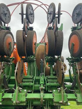 Reihen- / Körperabstand: 50 cm, Reihenanzahl (12-reihig), Mulchsaat ________ Fahrwerk, Unterlenkeranhängung, Stützfuss, AndruckrollenReihenanzahl: 12