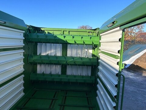 Technische Daten Lade- und Häckseltransportwagen DIN-Volumen (DIN 11741) ca. 37 mý Gesamtlänge: 9.290 mm Gesamtbreite: 2.900 - 2.980 mm Gesamthöhe: 3.820 - 3.950 mm Spurbreite: 2.050 mm Zapfwellendrehzahl: 1.000 U/min Leistungsbedarf ab 103 kW (140 PS) Grundausstattung Anhängung Knickdeichsel Hydraulische Deichselfederung (0810) Gelenkwelle, Weitwinkelgelenk beidseitig, 1 3/8", Z=6, Überlastkupplung Hydrauliksystem Load-Sensing sowie mit Druckumlauf zu betreiben Pick-up Rollenniederhalter Querpendelnde Pick-up Ungesteuerte Pick-up EasyFlow (1.800 mm Aufnahmebreite nach DIN 11220) Fünf W-förmig angeordneten Zinkenreihen, 55 mm Zinkenabstand 16x6.50-8 Pendeltasträder Schneid- und Förderrotor Rotorantrieb über Stirnradgetriebe Schneid- und Förderrotor mit acht Zinkenreihen, Förderauflagen aus Hardoxstahl 1.595 mm Förderkanalbreite Schneidwerk mit 41 Messern, Messergruppenschaltung (0 / 20 / 21 / 41) Theoretische Schnittlänge 37 mm/74 mm (halber Messersatz) Einzelmessersicherung (Sensibilität der Messersicherungen einstellbar) Automatische Rückstellung der ausgelösten Messersicherung Seitlich ausschwenkbare Messerkassette, Entrieglung von einer Wagenseite bedienbar Laderaum Schwenkbare Vorderwand PowerLoad Ladeautomatik Abgesenkter Kratzboden Doppelter Kratzboden mit vier Rundstahl-Kratzbodenketten Beidseitiger hydraulischer Kratzbodenantrieb Umschaltventil für zwei Kratzbodengeschwindigkeiten (Eilgang) Ganzstahlaufbau LED-Laderaumbeleuchtung (bestehend aus Kabelbaum und vier LED-Leisten) Einstiegsluke Hydraulische Heckklappe inkl. Öffnungssensor und Kratzbodenabschaltung Dosieraggregat Dosierwalzen und Kratzbodenabschaltung Wechselnder Antrieb zwischen Förderrotor und Dosierwalzen Direkter Dosierwalzenantrieb inkl. Freilauf, über Hauptgelenkwelle abgesichert Weitere Ausstattung Komfort Bordelektronik 1.0 ISOBUS-fähig Bereifung 800/45 R 26.5 TL 174 D (10-Loch-Felge) Basis-Ladeautomatik als einfache Lösung für einen Wagen mit Komfort Bordelektronik 1.0 Untenanhängung mit Kugelkopfanhängung 80 (Stützlast 4.000 kg) und Nachlauflenkung Laderaumerhöhung Dosieraggregat mit 3 Walzen Deichselfederung Vorbereitung für KRONE Diagnostics bei Komfort Bordelektronik 1.0 ISOBUS Terminal CCI 800 In-cab Knickdeichselbedienmodul 1.0 zur Beschleunigung des An- und Abbauvorgangs zwischen Traktor und Ladewagen Eilgangautomatik 1.0: Lastenabhängiges Zuschalten des Kratzbodeneilganges Elektronische Wiegeeinrichtung 1.0 - nur möglich bei Achse mit hydraulischem Ausgleich Rotorabdeckung (für Einsatz als Häckseltransportwagen) Hydropneumatische Fahrwerksfederung (nur möglich bei Tandemaggregat mit hydraulischem Ausgleich) Zusätzliche hintere Pick-up-Tasträder (zur Optimierung der Bodenanpassung) 1x zusätzliches Messer (Anzahl der Messer in Abhängigkeit des Schneidwerkes zu bestellen) (41x) Arbeitsbeleuchtung Basis 1.0 (Lichtmodul + zwei LED-Scheinwerfer) Ausführung 40 km/h (mit COC nach (EU) 167/2013) KRONE SmartConnect 500 Hardware + Freischaltung Freischaltung für Datenübertragung an agrirouter (Plattform zum herstellerübergreifenden Datenaustausch) und KRONE SmartTelematics (Ansicht und Auswertung von Live-Daten Ihrer KRONE- Maschine) (Laufzeit 24 Monate) --- Ersteinsatz in 2024 --- Wüstenberg Landtechnik GmbH & Co. KG