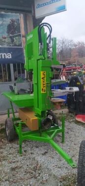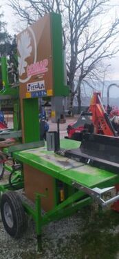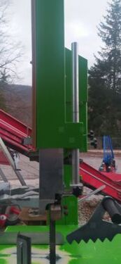 Sega combinata con spaccalegna idraulico verticale girevole carrellata, azionata da presa di forza Volani da 700 mm carrello spingitronco regolatore tensione lama 4 pie coltello a 2 tagliKontaktdaten: