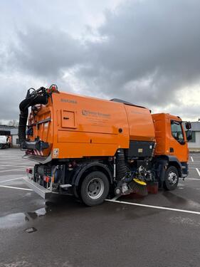 Tachostand: 10000, Erstzulassung: 27.09.2023 ________ Motor: Motor PX-7 6-Zylinder-Dieselmotor, 6,7 Liter. Leistung 194 kW (264 PS) bei 2300 U/min. Max.Drehmoment 1000 Nm bei 1000- 1700 U/min. Ausführung LF 260 FA 4X2 Lkw, 16t D0555471 Angetriebene Hinterachse mit mechanischer Differentialsperre Bremsanlage Auspuffbremse Integration der Funktion in die Elektronische Bremsanlage (EBS). Bei Einschalten über Lenkradschalter wird die Auspuffbremse nach Loslassen des Gaspedals aktiviert. Schadstoffklasse: Schadstoffklasse Euro 6 Getriebeausführung: Handschaltgetriebe, 6 GängeGetriebe: 6-Gang-Handschaltgetriebe 6S1000 OD, 6,75-0,78 Radstand: 3250mm Fahrgestellgewicht: Technisch zul. Fahrgestellgewicht 16000 kg Fahrerhaus: Day Cab mit Stoßfänger aus Stahl, getönten Scheiben und elektrischen Fensterhebern. Elektrisch beheizbare Hauptspiegel und Weitwinkelspiegel. Fahrerhausbreite 2130 mm Lichtdurchlässige Sonnenblende außen in grün oberhalb der Windschutzscheibe Tagfahrlicht, Stoßstangenmontierte Beleuchtungseinheiten mit kombinierter Nebelscheinwerfer- und Abbiegebeleuchtungsfunktion Elektrische Verstellung der Hauptspiegel Zentralverriegelung mit Außenlicht-Prüffunktion umfasst 2 Fernbedienungen und 2 Schlüssel mit Sender. Luftgefederter Luxus-Fahrersitz mit einstellbarer Dämpfung und pneumatischer Lendenwirbelstütze. Sitzkissenheizung, Integrierte Kopfstütze. Dreipunkt-Sicherheitsgurt. Velours Sitzbezug. Armlehne am Fahrersitz manuell gesteuerte Klimaanlage mit Umluftfunktion Kommunikation und Fahrmanagement Radio/USB-Player. Lautsprechersystem mit 2 Lautsprechern. Lkw-Telefon. Freisprecheinrichtungs-Kit mit SIM-Kartensteckplatz (für 2G- oder 3G-Netzwerk) und Bluetooth Antenne. Die Multipoint-Kopplung ermöglicht die gleichzeitige Bedienung von zwei zusätzlichen Mobiltelefonen über das Lenkrad. Lackierung: Fahrerhausfarbe: RAL 2011 Standard Grundausstattung: Hydrostatisches Getriebe HGB2 Max. 1400Nm und ca. 340 HP Im Fahrgestell eingebautes mechanisches Umschaltgetriebe mit integriertem Hydrostat für stufenlose Geschwindigkeitsregelung im Kehrbetrieb Transportfahrt 0 - 85 km/h über Standardgetriebe (Tempomat optional) Dieser Arbeitsantrieb gestattet eine stufenlose Regelung der Kehrgeschwindigkeit vorwärts (1 - 40 km/h) und rückwärts (1-10km/h) über ein elektronisches Gaspedal (Easy- Drive). Gleichzeitig kann dabei die Saugleistung unabhängig von der Fahrgeschwindigkeit zwischen ECO und Max reguliert werden. Kraftstofftank im Kehraufbau, Kapazität ca. 190 l Hydraulischer Ventilatorantrieb. Hydrauliköltank 50 l, Motorraum mit geräuschdämmendem Material ausgeführt, Ventilator Abluftführung nach oben durch den Behältervorbau, Stufenlose elektronische Turbinenverstellung, Hydraulikpumpe, einfach. Kehrgutbehälter: Kehrgutbehälter (mit Heckklappe und Sieb) und Wassertank aus 1.4003 Chromstahl Kehrgutbehälter Bruttovolumen 6,5 m³, Kehrgutbehälterboden aus chromlegiertem Edelstahl1.4301. Kehrgutbehälter Kippwinkel ca. 55 Grad, Schmutzrutsche aus Chromstahl 1.4003, Beobachtungsklappe rechts und links Schmutzwasserablass über Klemmschlauch und 2" Zoll Ablasshahn, Luftführungssieb, manuell Abklappbar, 2 Rundumkennleuchten orange, hinten auf KGB, Saugrohrklappe Außen am Behälter, hydraulisch betätigt, 4-Stufige Sicherungsstütze, pneumatisch betätigt. Markierungsleuchten am Behälterheck, Seitenmarkierungsleuchten. Kehraggregat: Tellerbesen gezogen Hydraulisch angetriebene Tellerbesen, Tellerbesen Stahlbesatz, Durchmesser 500 mm Stufenlose Drehzahlregulierung für Tellerbesen. Zwei Nachlaufräder für Saugmund, Breiter Saugmund 750 mm, Automatisches Anheben der Kehraggregate bei Rückwärtsfahrt, Arbeitsscheinwerfer für Kehraggregat LED, Wurfbegrenzungsschürze für Tellerbesen, Kehrgutaufnahme beidseitig Walzenbesen: Walzenbesen Aufhängung, gezogen, schwenkbar Besenlänge 1.300 mm, Besendurchmesser 406 mm mit Kunststoffbesatz Hydraulisch angetriebener Walzbesen Wurfbegrenzungsschürze für Walzenbesen-Aggregat Wasseranlage: Wassertankvolumen ca. 1.554 l Wasserbehälter aus Chromstahl, 1.4003 mit Beschichtung Wasserstandsanzeige im Fahrerhaus Wasserfülleinrichtung, Storz C (2"), rechts Wasserpumpe, hydraulisch angetrieben Automatischer Wasserstop bei Anheben der Kehraggregate Wasserausblasanlage 4 Wassertankreinigungsöffnungen, um Kalk und eventuelle Verschmutzungen zu entfernen Elektrische Wasserventile im Fahrerhaus Niederdruck Sprühbalken unter Fahrerhausfront (4 Düsen) 2 Wasserdüsen für Tellerbesen 2 Wasserdüsen für Saugschacht Instrumententräger und Schaltpult: Bucher Instrumententräger, inkl. 7" Farbdisplay Ergonomische Bedieneinheit, montiert an der Fahrertür, ausgestattet mit den Hauptfunktionen Display beinhaltet die folgenden Funktionen: Wasserstandsanzeige, Kraftstoffanzeige, Drehzahl Einbaumotor, Betriebsstunden Kühltemperatur Warn- und Kontrolllampen für Batterielampen, hinter Achslast, Einbaumotor Ölstands anzeige, Luftfilterverschmutzung, Kühlmitteltemperatur, Motorenöl Druckanzeige Kontroll- und Steuerungseinheit zur Regulierung des Besenauflagedrucks (Besenentlastung), stufenlose Drehzahlregulierung der Tellerbesen, stufenlose Drehzahlregulierung des Aufbaumotors. Elektrische Ventile für Wasseranlage, Betätigung im Fahrerhaus. Bedienung der Schmutzbehälterfunktionen mittels einer Funkfernbedienung vom Fahrerhaus aus, aber auch von außen möglich. Behälterkippeinrichtung über Elektro-Hydraulikpumpe oder über Aufbaumotor, wenn in Betrieb. Warnlampe bei angehobenem Schmutzbehälter mit Warnton Sonderausstattung: - Luftführungssieb im Schmutzbehälter pneumatisch Heben und Senken - Rüttelvorrichtung für Luftführungssieb - pneumatisch betätigt - Kettenvorhang im Schmutzbehälter, vor dem Luftführungssieb - Wassertank Anschluss, Kupplung Typ A, Storz 2 1/2 Zoll - Schmutzwasser-Ablaßsieb - mit abgestufter Perforation, an der Heckklappe angebracht, ermöglicht eine effizientere Entwässerung des Schmutzraumes - Montage